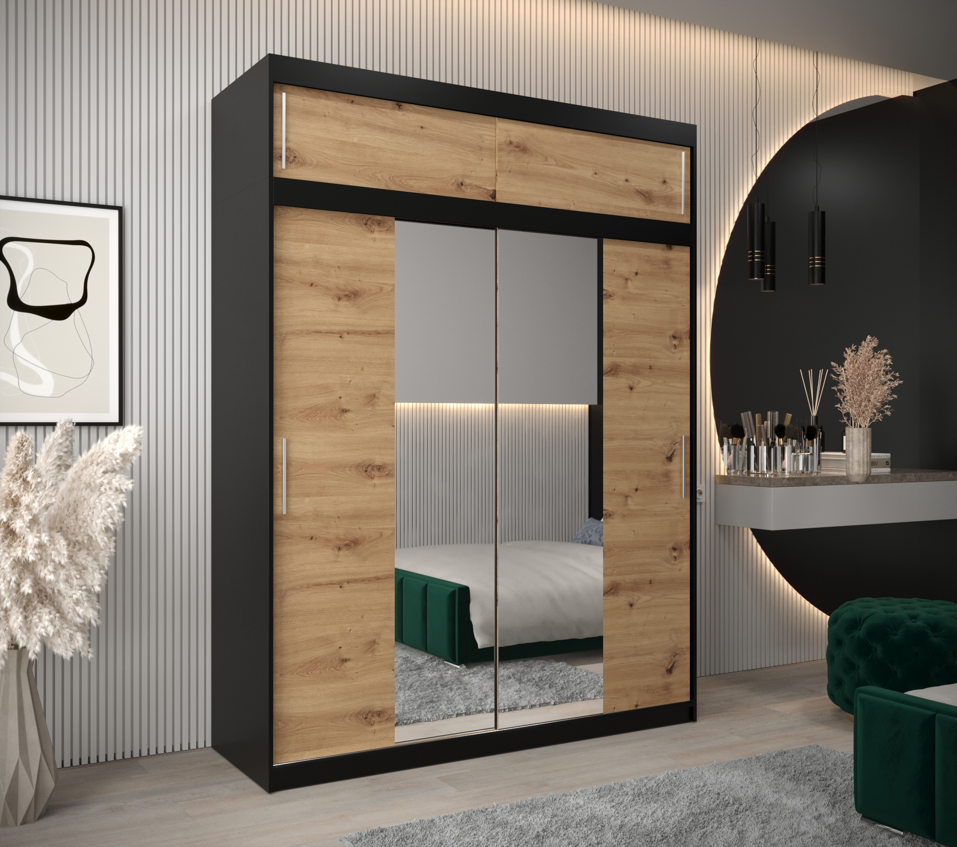 Šatní skříň je dostupná v několika barevných dekorech: dub artisan, dub sonoma, černá a bílá. Tyto odstíny lze vzájemně kombinovat, což umožňuje přizpůsobit skříň vašemu vkusu a stylu interiéru.