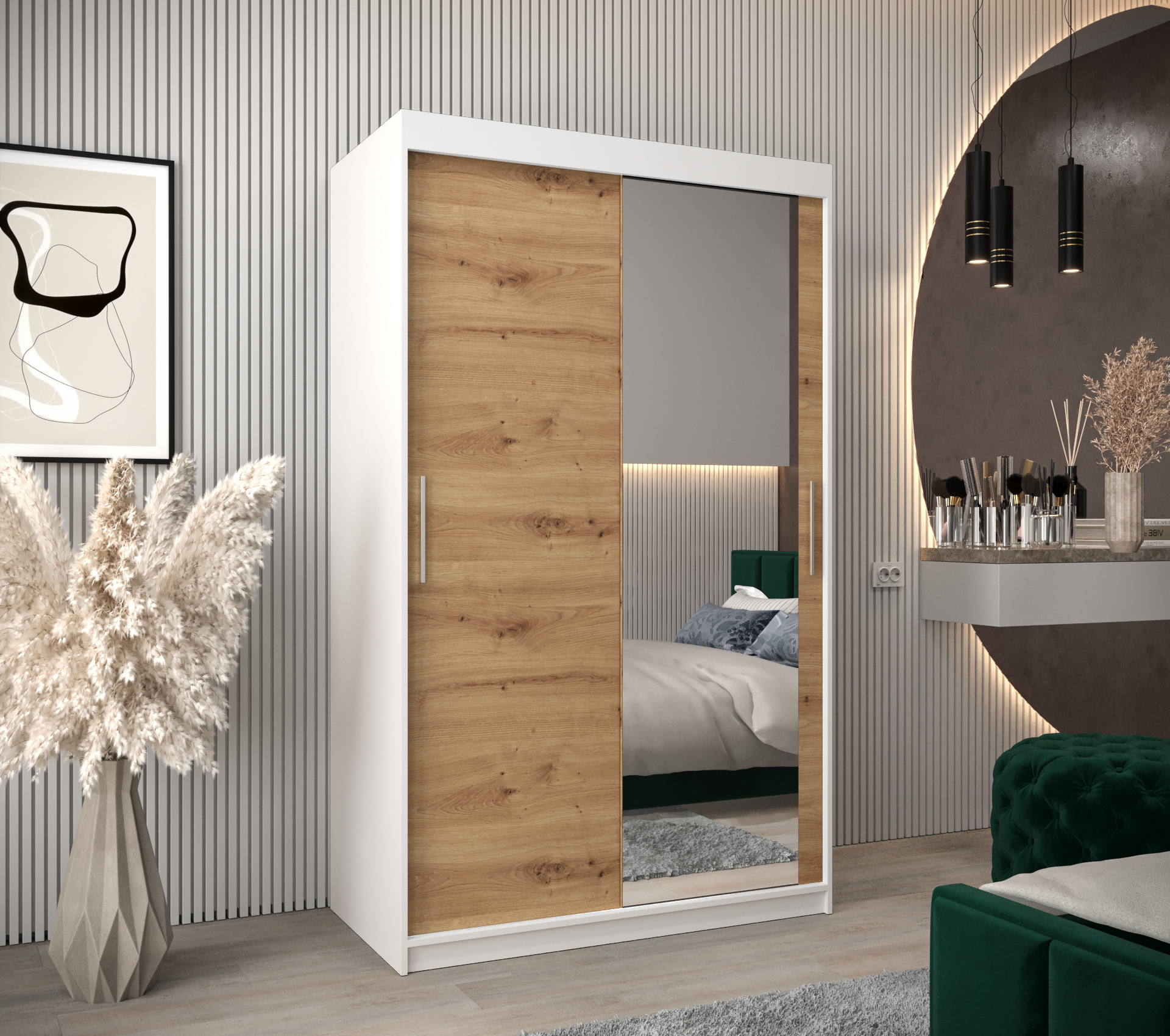 Šatní skříň Abi T2 – Bílá s Dubovými Dveřmi