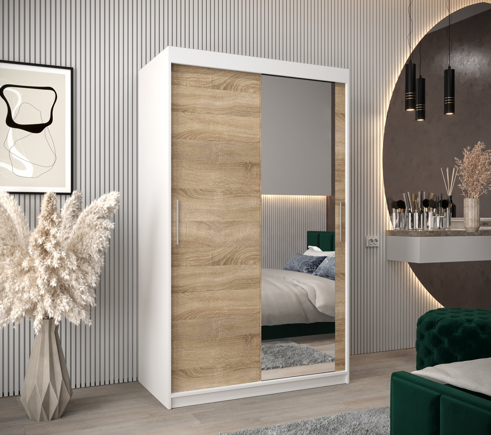 Šatní skříň Abi T2 – Bílá 120 cm s dubovými dveřmi