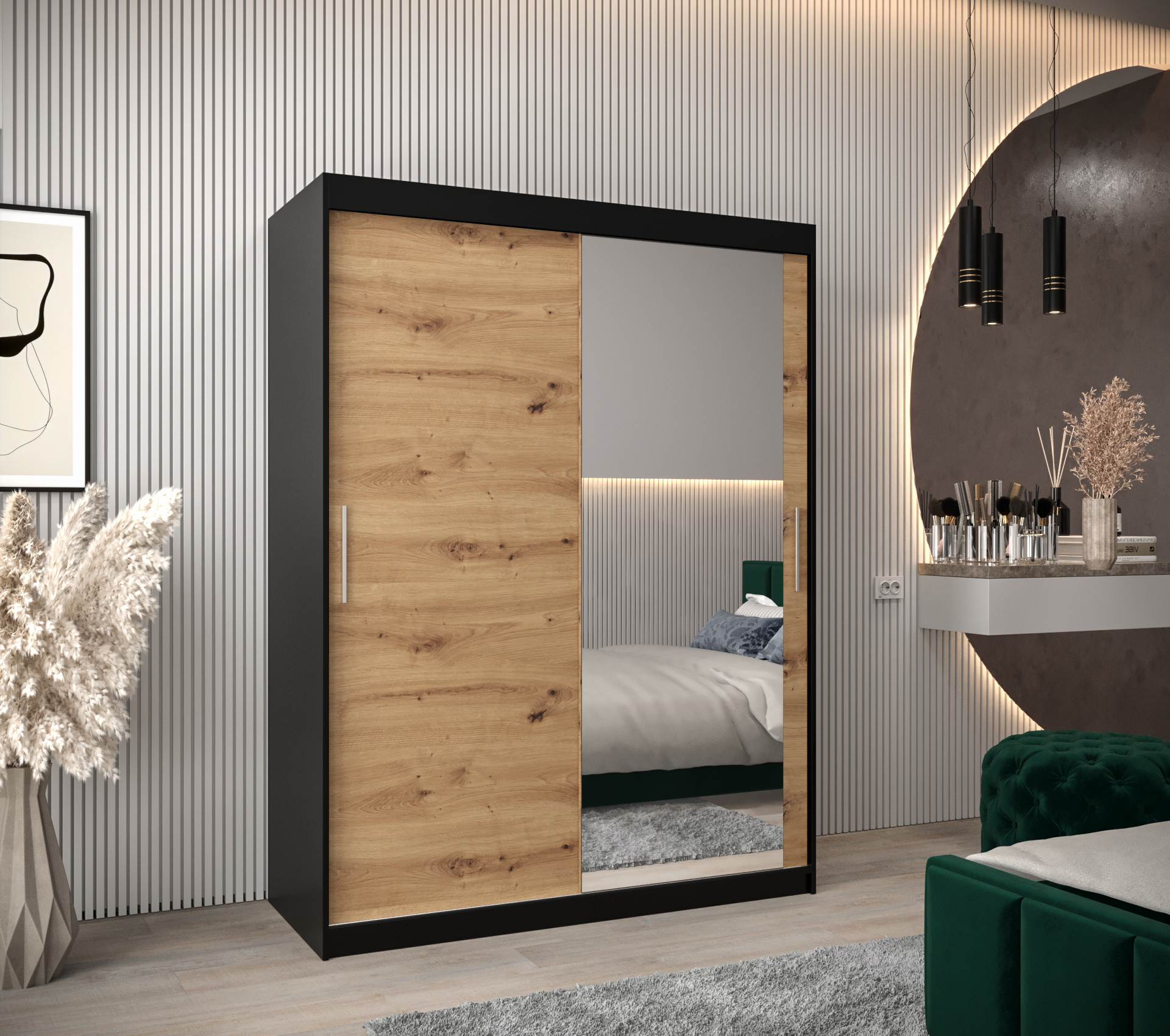 Šatní skříň Abi T2 – Černá 150 cm s Dubem Artisan