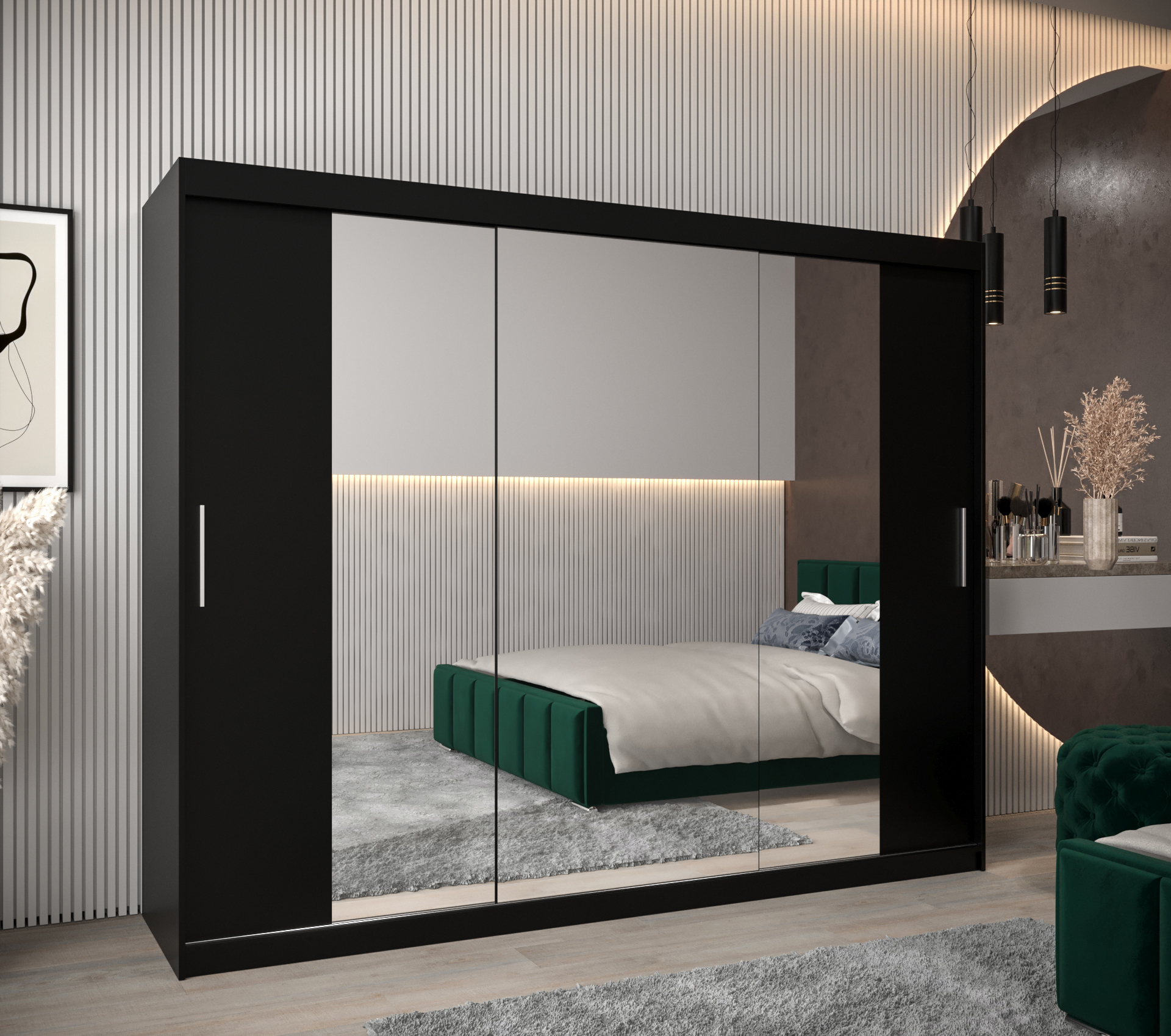 - Zrcadlo: Součástí skříně je praktické zrcadlo, které opticky zvětšuje prostor a usnadňuje oblékání.