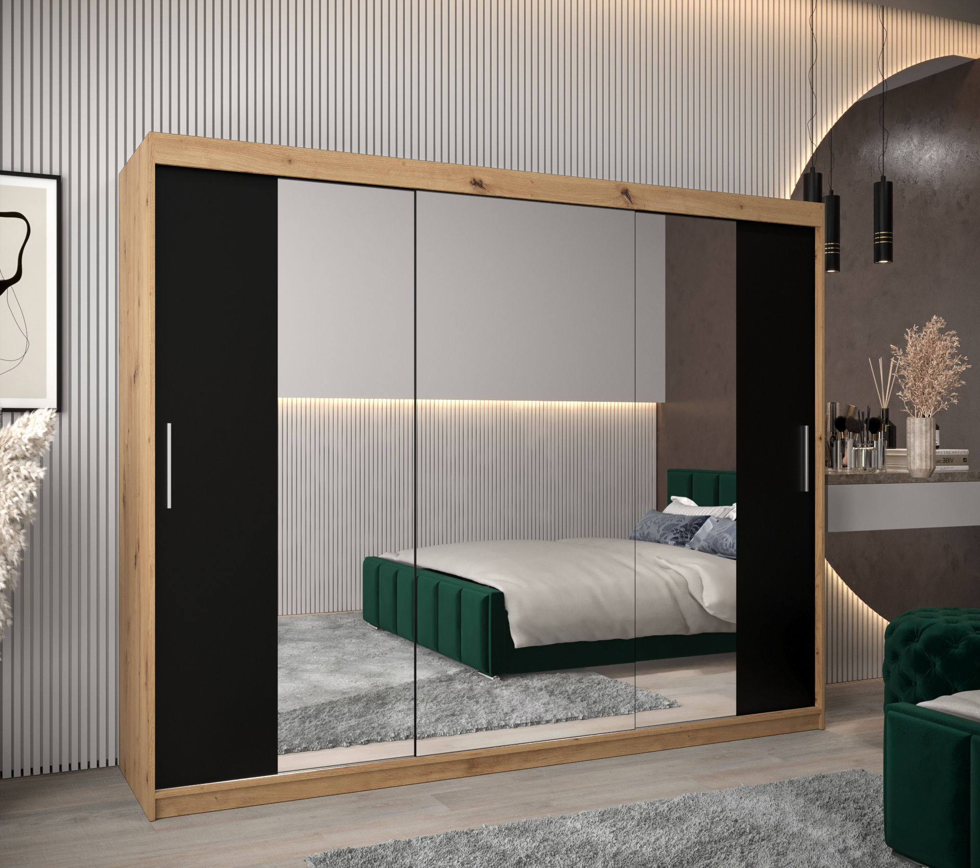 Skříň Abi T2 je dostupná v různých rozměrech, včetně šířky 250 cm. Celkové rozměry jsou: