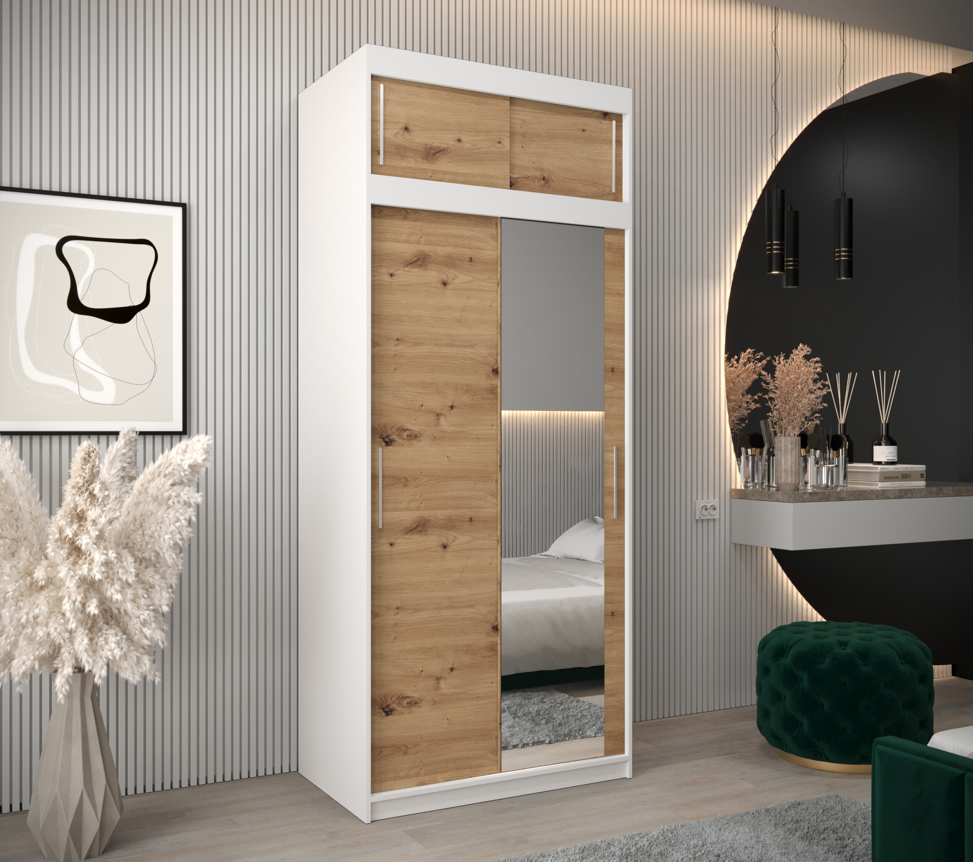 • Zrcadlo: Šatní skříň je vybavena zrcadlem, které opticky zvětší prostor a usnadní vám každodenní úpravy.