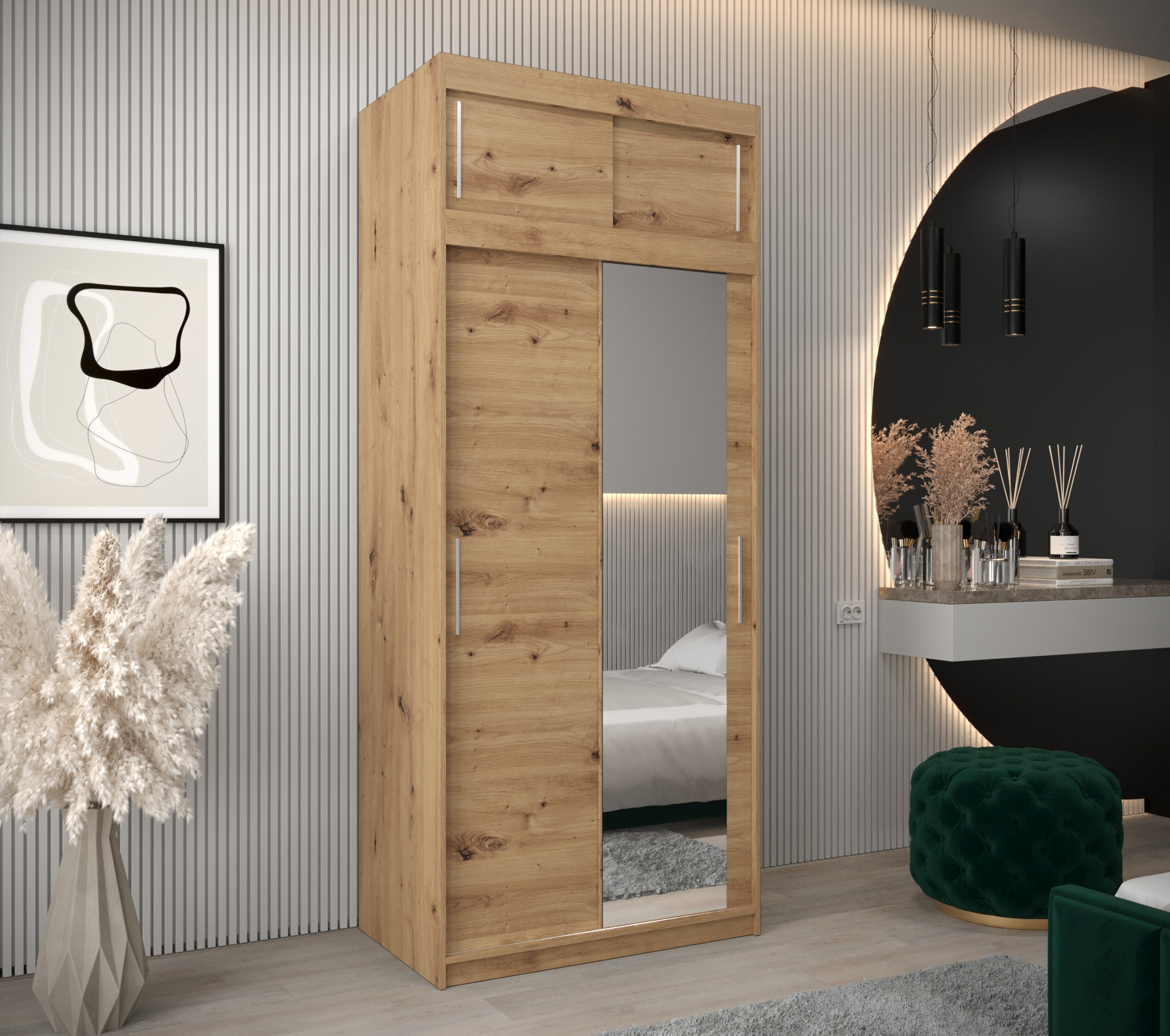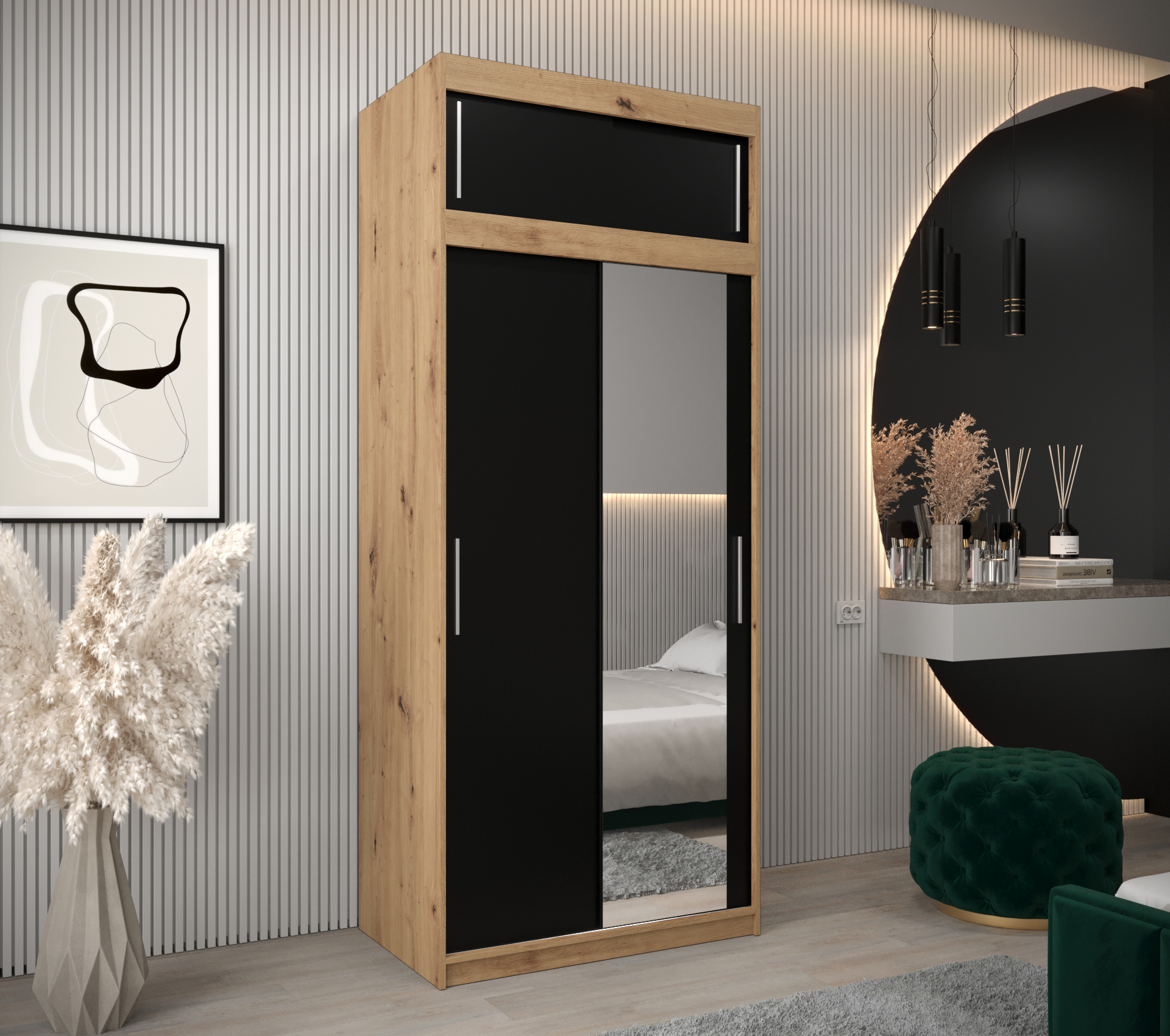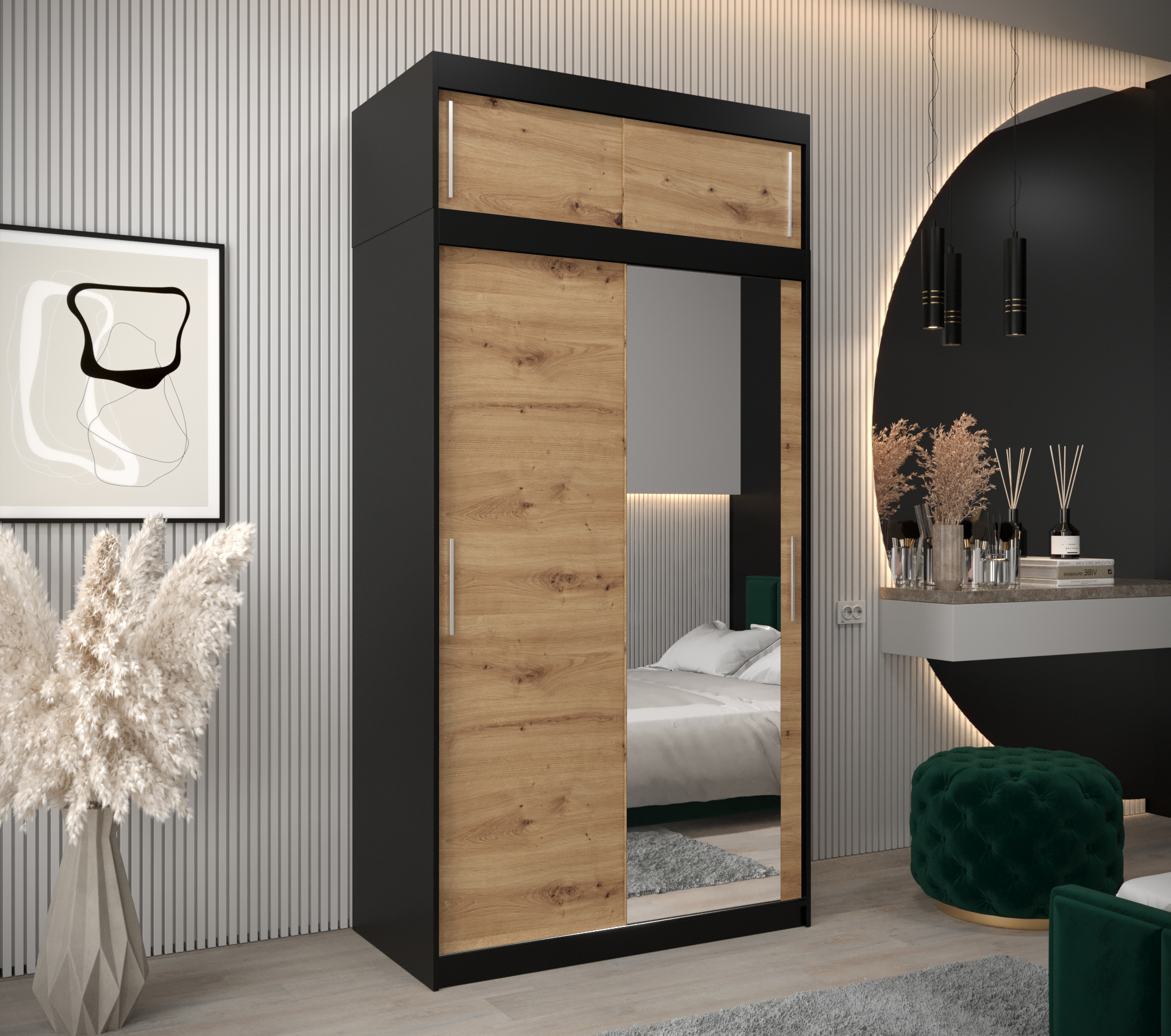 Šatní skříň Abi T2 je dostupná v několika barevných variantách, včetně dub artisan, dub sonoma, černé a bílé. Tyto odstíny lze vzájemně kombinovat, což umožňuje přizpůsobení skříně vašim osobním preferencím a stylu interiéru.