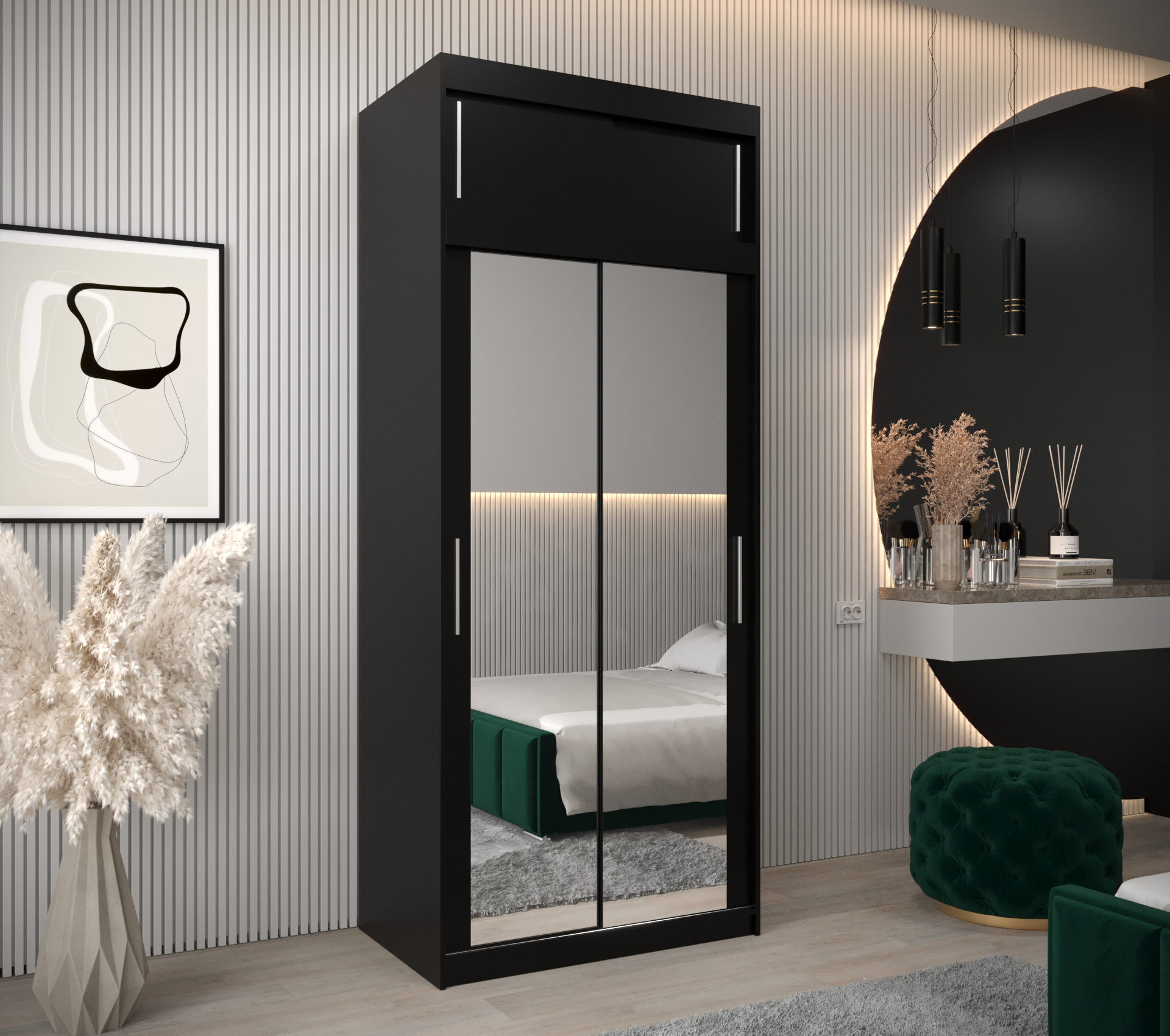 - Zrcadlo: Skříň je vybavena zrcadlem, které opticky zvětšuje prostor a přidává na funkčnosti.