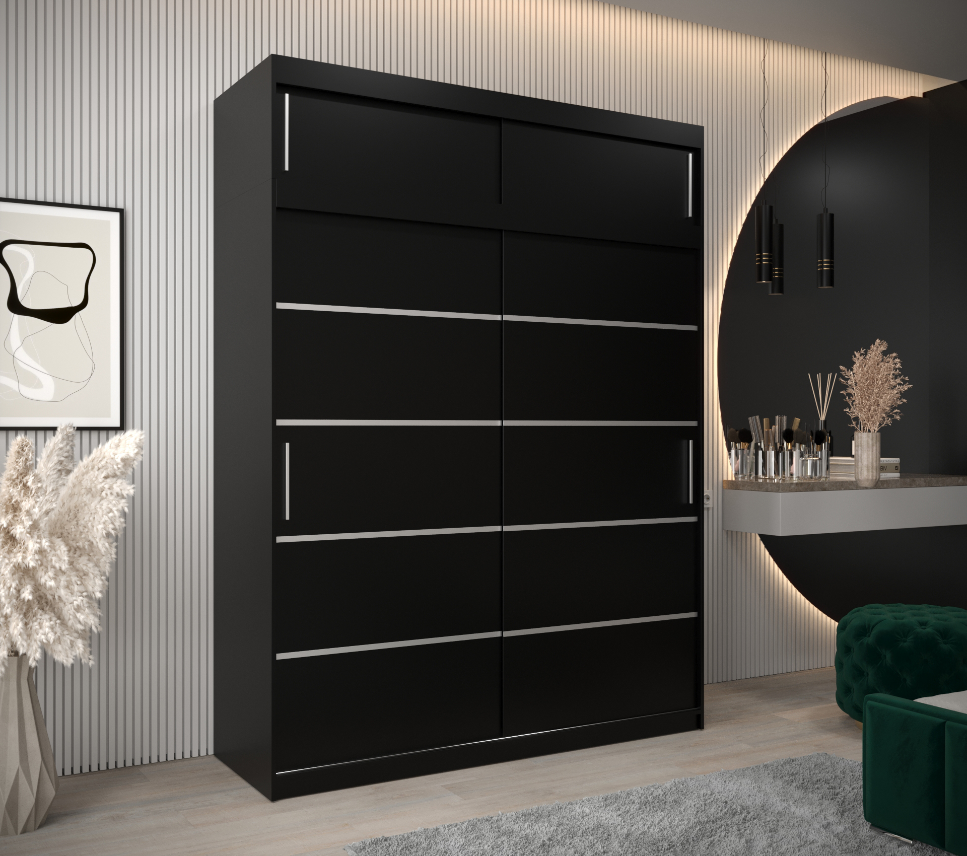 Šatní skříň Abi V1 s nástavcem v černé barvě je ideálním řešením pro ty, kteří hledají moderní a praktický kus nábytku do své ložnice. S rozměry 180 cm, tato skříň nabízí dostatek úložného prostoru pro vaše oblečení a další věci. Kromě toho, její stylový design a kvalitní zpracování zaručují, že se stane ozdobou vašeho interiéru.
