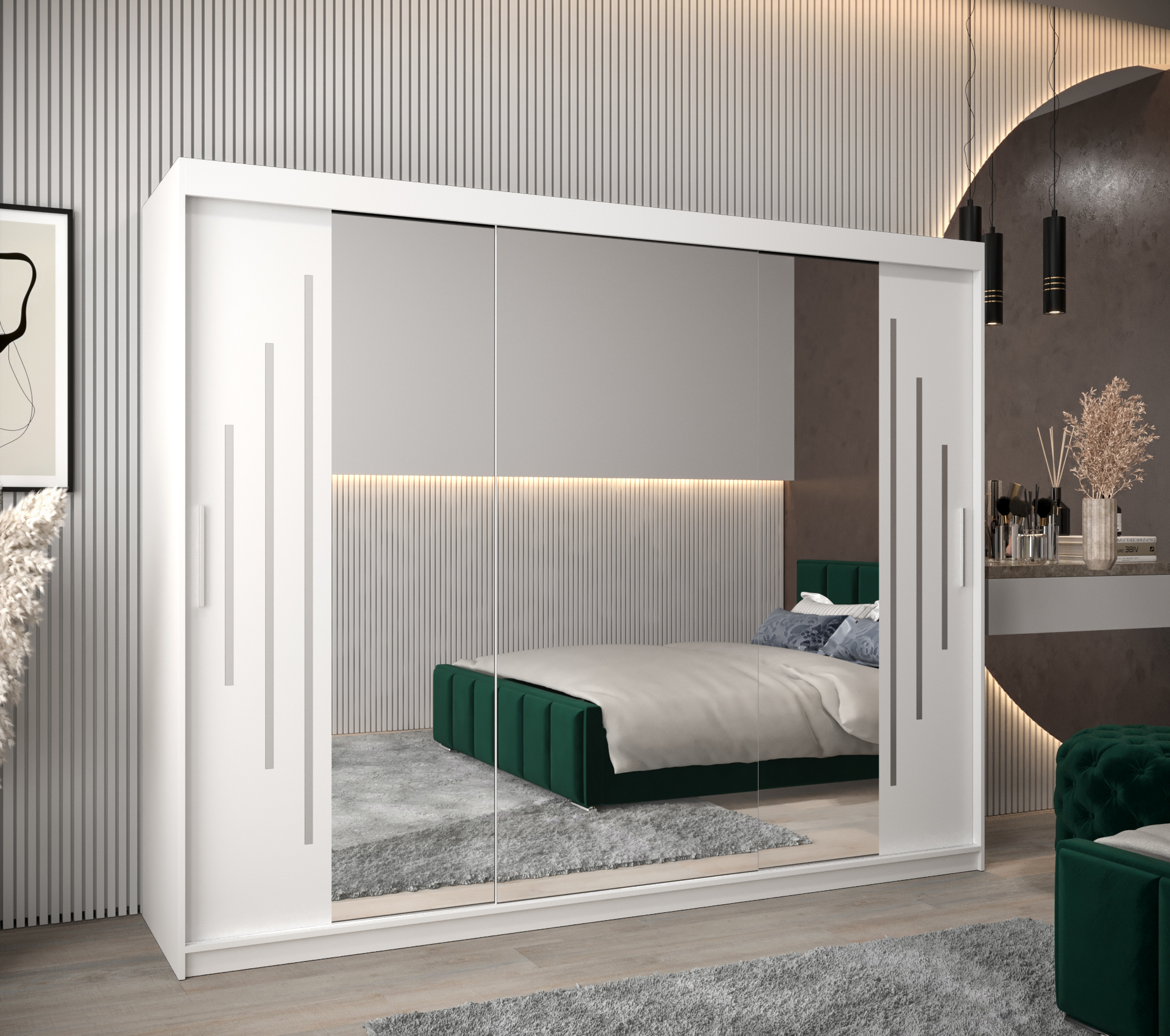 - Zrcadlo: Skříň je vybavena zrcadlem, které opticky zvětší prostor a usnadní výběr oblečení.
