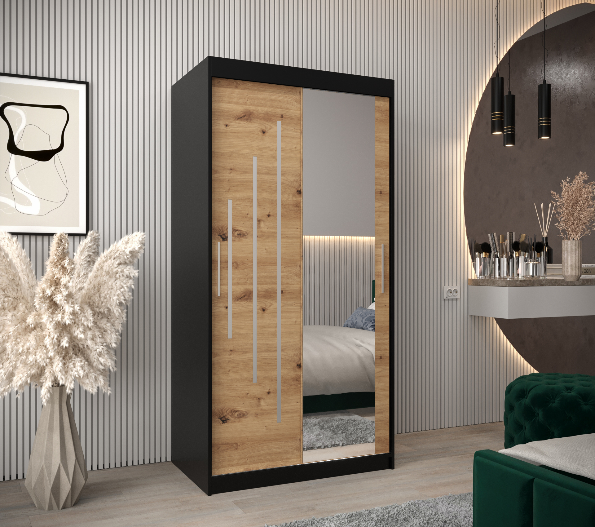 - Zrcadlo: Skříň je navržena se zrcadlem, což opticky zvětší prostor.