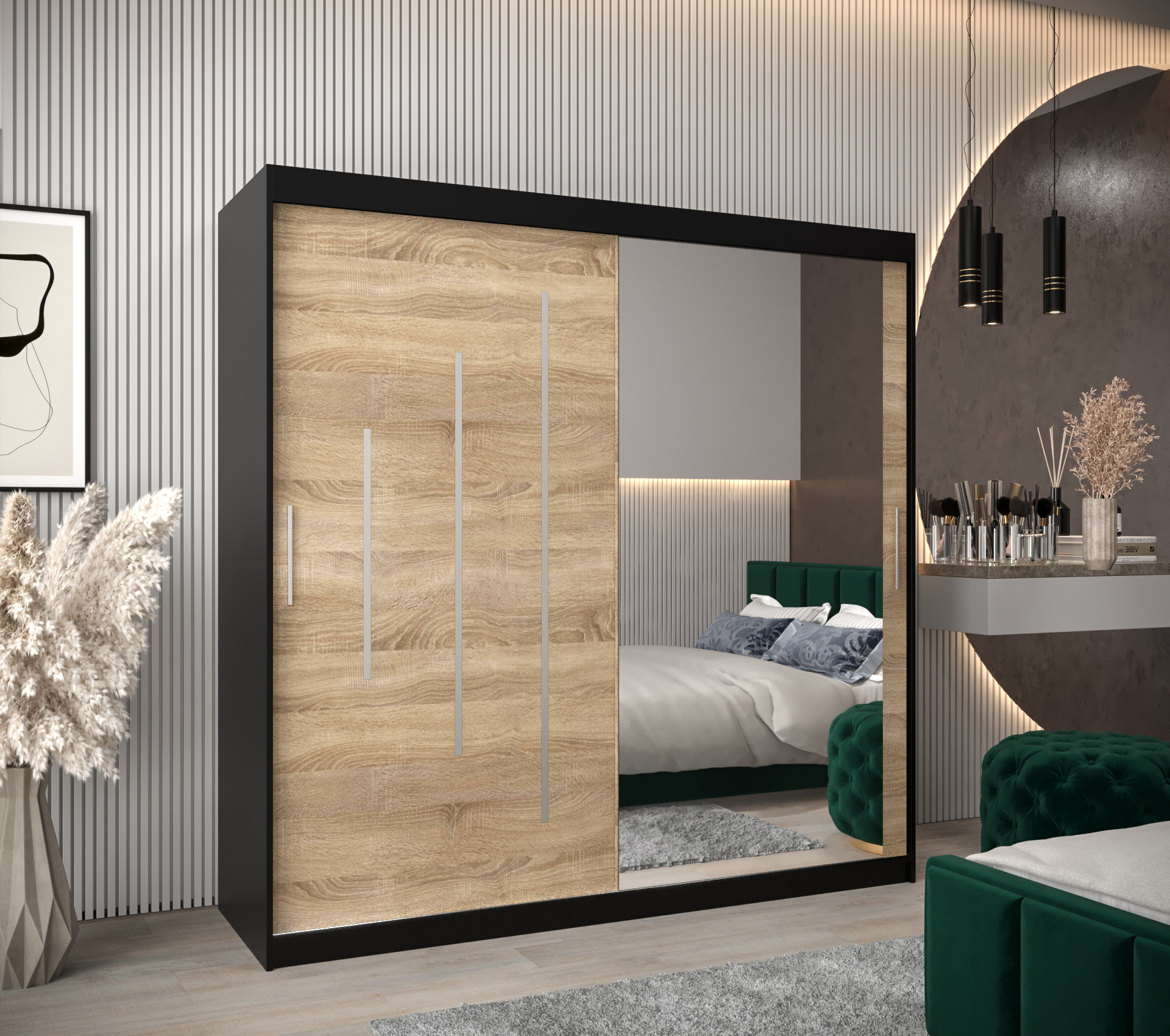 Šatní skříň Abi Y2 Černá 200 cm s Dubem Sonoma