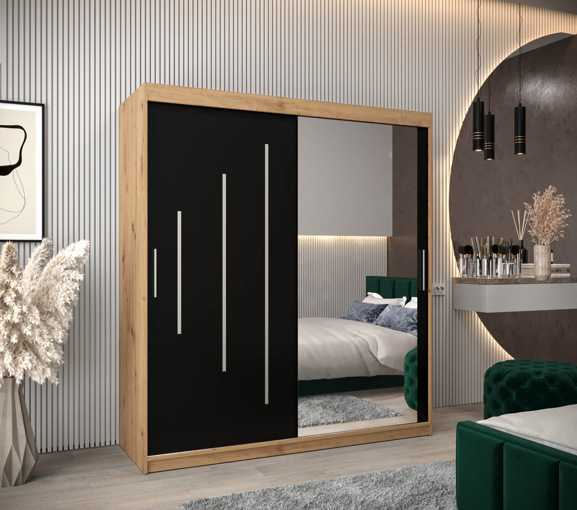 Hledáte stylovou a praktickou šatní skříň, která se hodí do vašeho interiéru? Šatní skříň Abi Y2 v barvě dub artisan s černými posuvnými dveřmi je ideálním řešením. Její moderní design a kvalitní zpracování zaručují dlouhou životnost a spokojenost s užíváním.