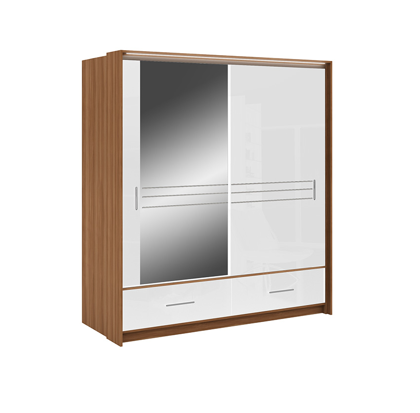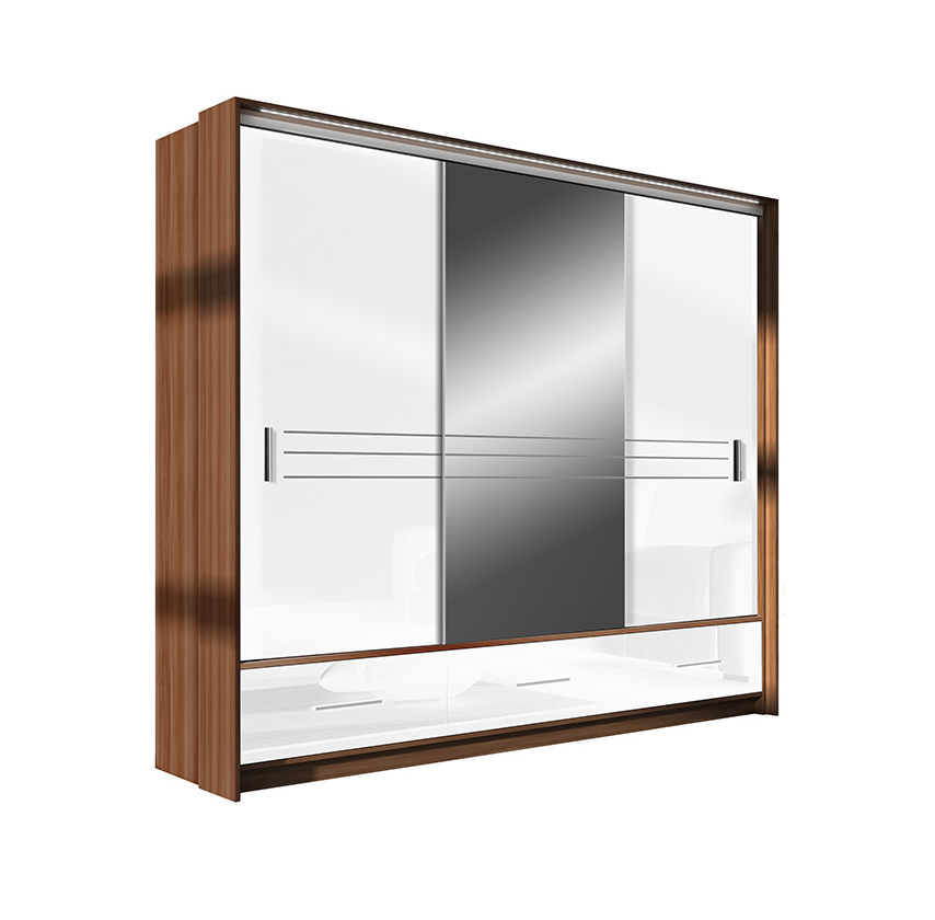 Šatní skříň Amsterdam s bílým leskem a zrcadlem