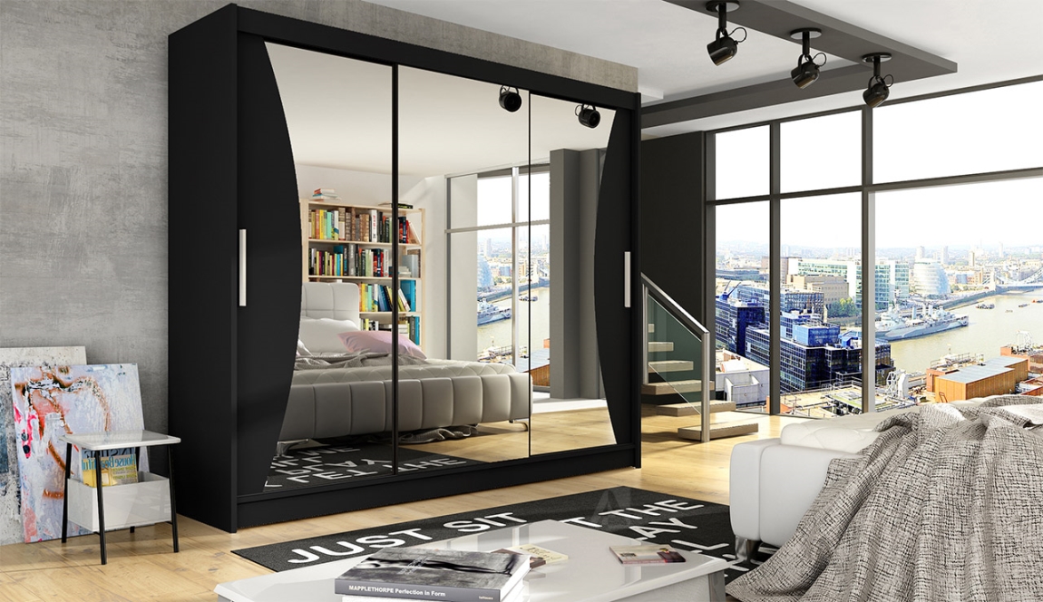 Šatní skříň ANDE IV – černý mat se zrcadlem