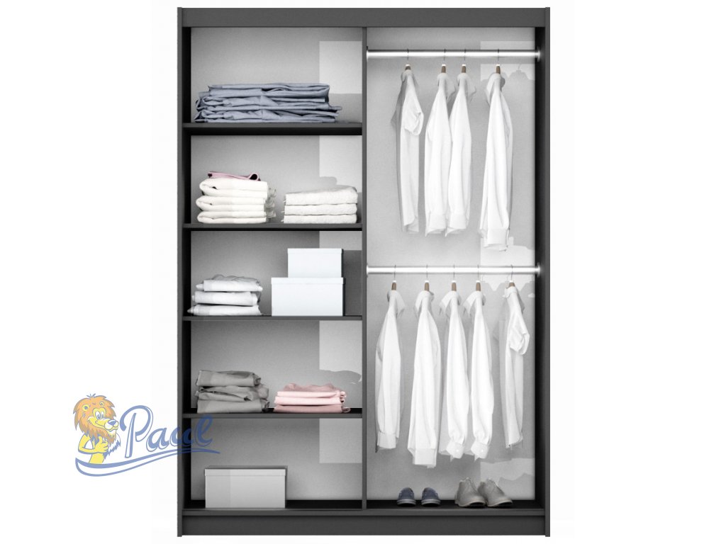 - Variabilita barev: Šatní skříň Bastia je k dispozici v bílé a grafitové barvě, což umožňuje snadné sladění s jakýmkoli interiérem.