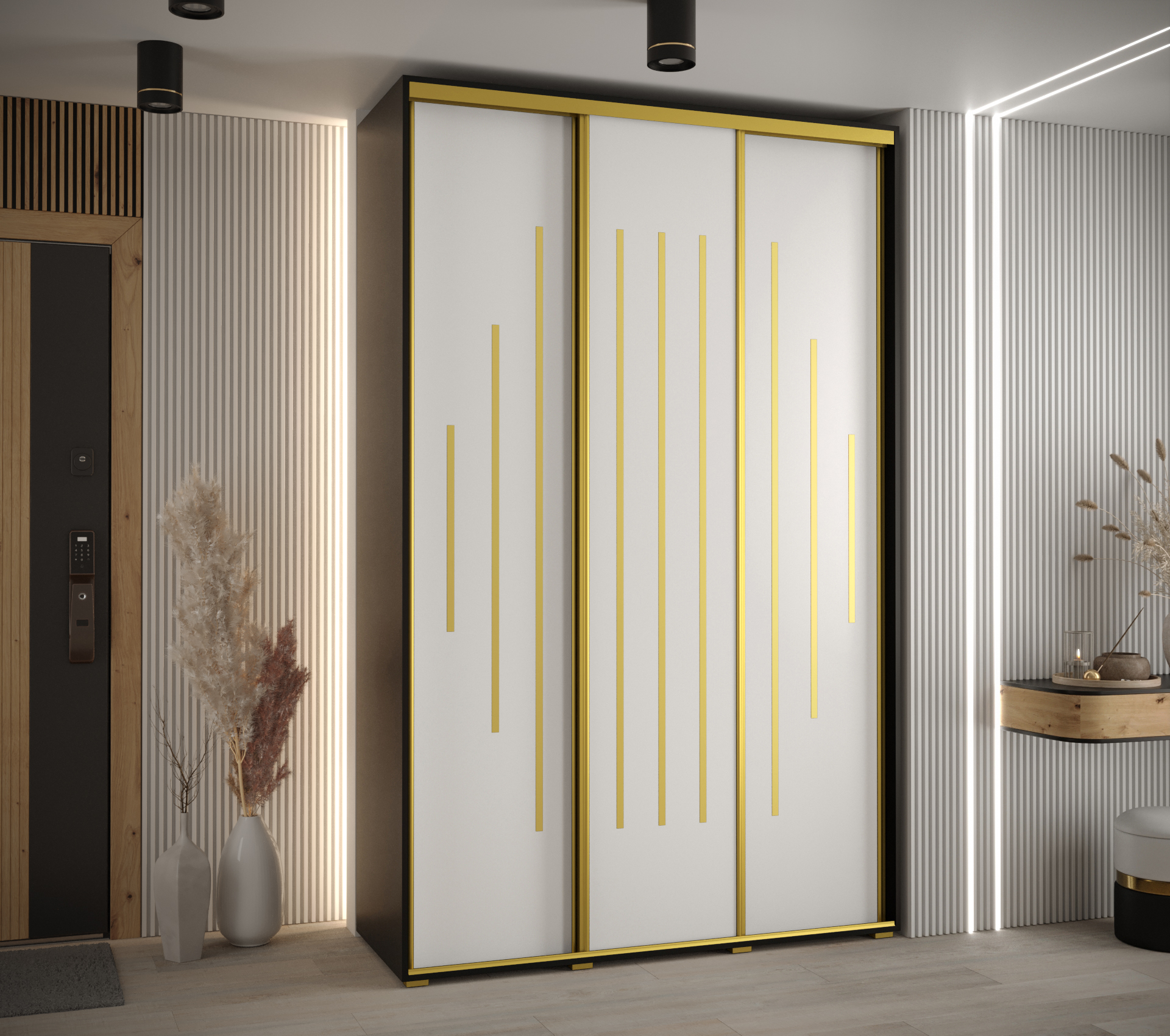 Získejte moderní šatní skříň, která efektivně využije váš prostor. Variabilní uspořádání a elegantní design přispějí k vašemu pohodlí.