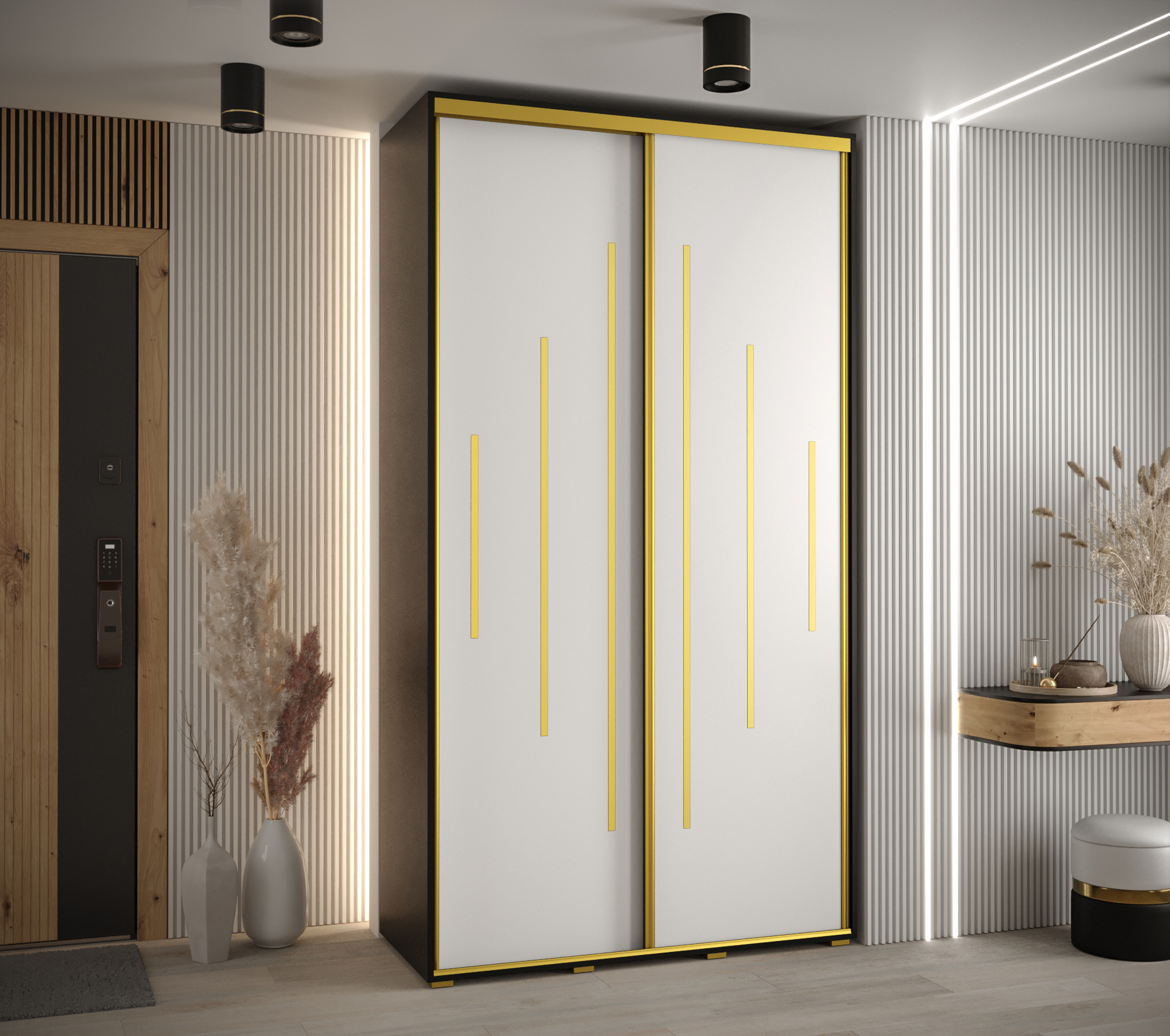 Šatní skříň Cannes 12 je dostupná v několika barevných variantách, včetně černé a bílé, což vám umožní vybrat si takovou, která se nejlépe hodí do vašeho interiéru. Ozdobné lišty a úchyty jsou k dispozici v různých barevných provedeních, takže si můžete přizpůsobit vzhled skříně podle vlastních představ.