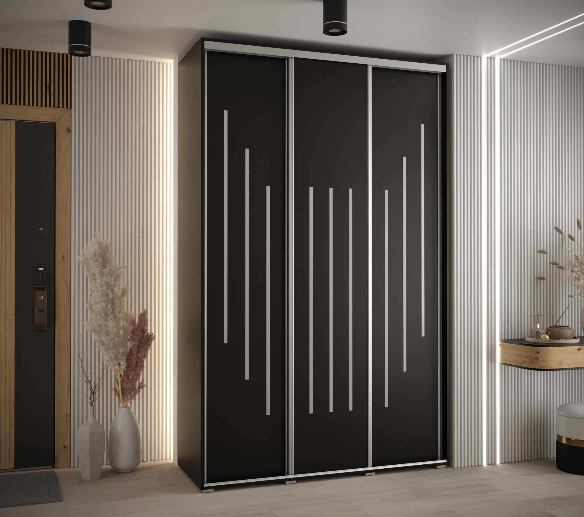 - Ozdobné pásky: Posuvné dveře jsou dekorovány plastovými pásky, které lze nalepit podle vlastního vkusu během montáže.