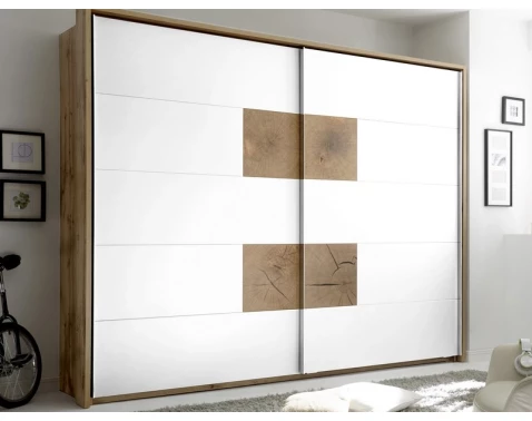 Šatní skříň Capri není jen praktickým kusem nábytku, ale také stylovým doplňkem, který transformuje vzhled vašeho interiéru. Její moderní design v kombinaci s přírodním dekorativním prvkem ji činí ideální volbou pro všechny, kdo ocení estetiku i funkčnost. Posuvné dveře navíc šetří místo, což je výhodné zejména v menších prostorech.
