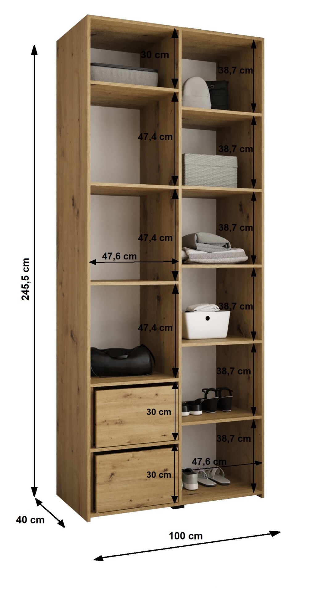- Rozměry: 100 cm šířka, 40 cm hloubka, 245,5 cm výška.
