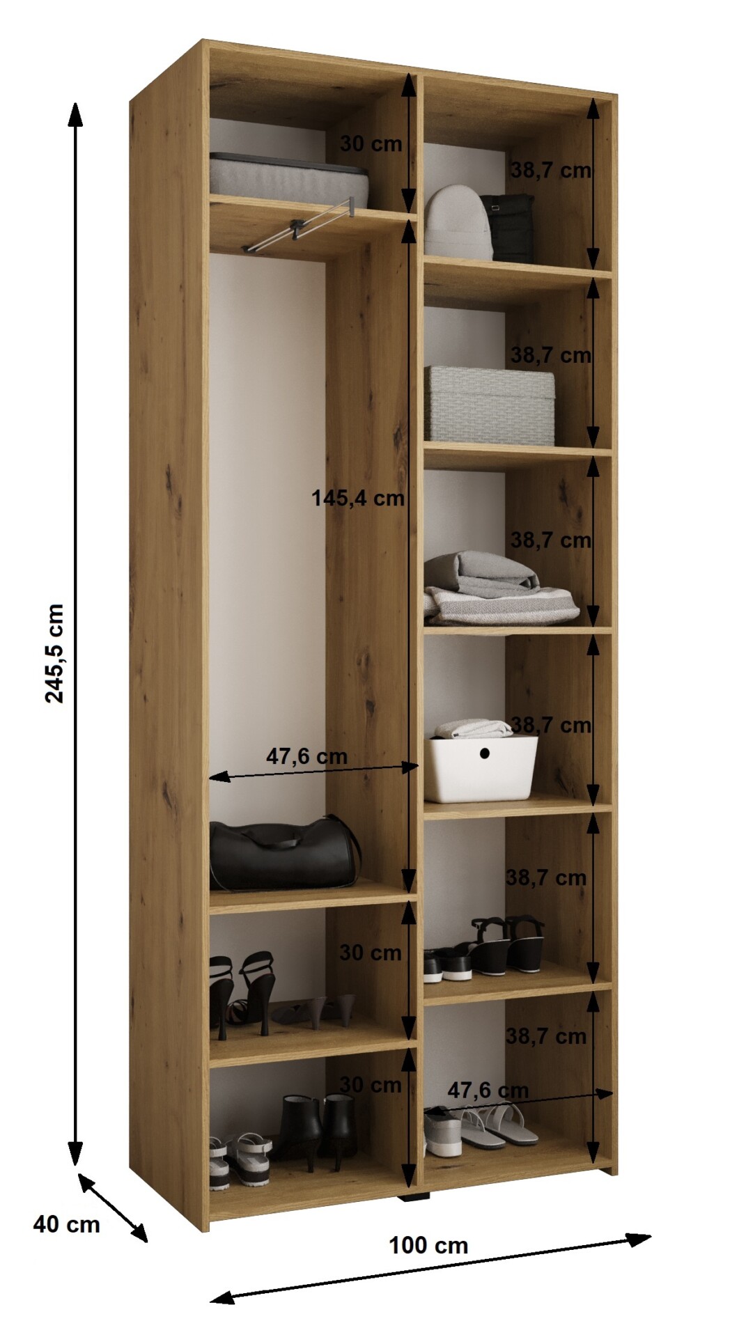 Šatní skříň Como 1 je ideálním řešením pro ty, kteří hledají moderní a funkční nábytek do svého domova. S hloubkou 40 cm a výškou 245,5 cm se skříň skvěle hodí do různých prostor, ať už se jedná o ložnici, předsíň nebo dětský pokoj.