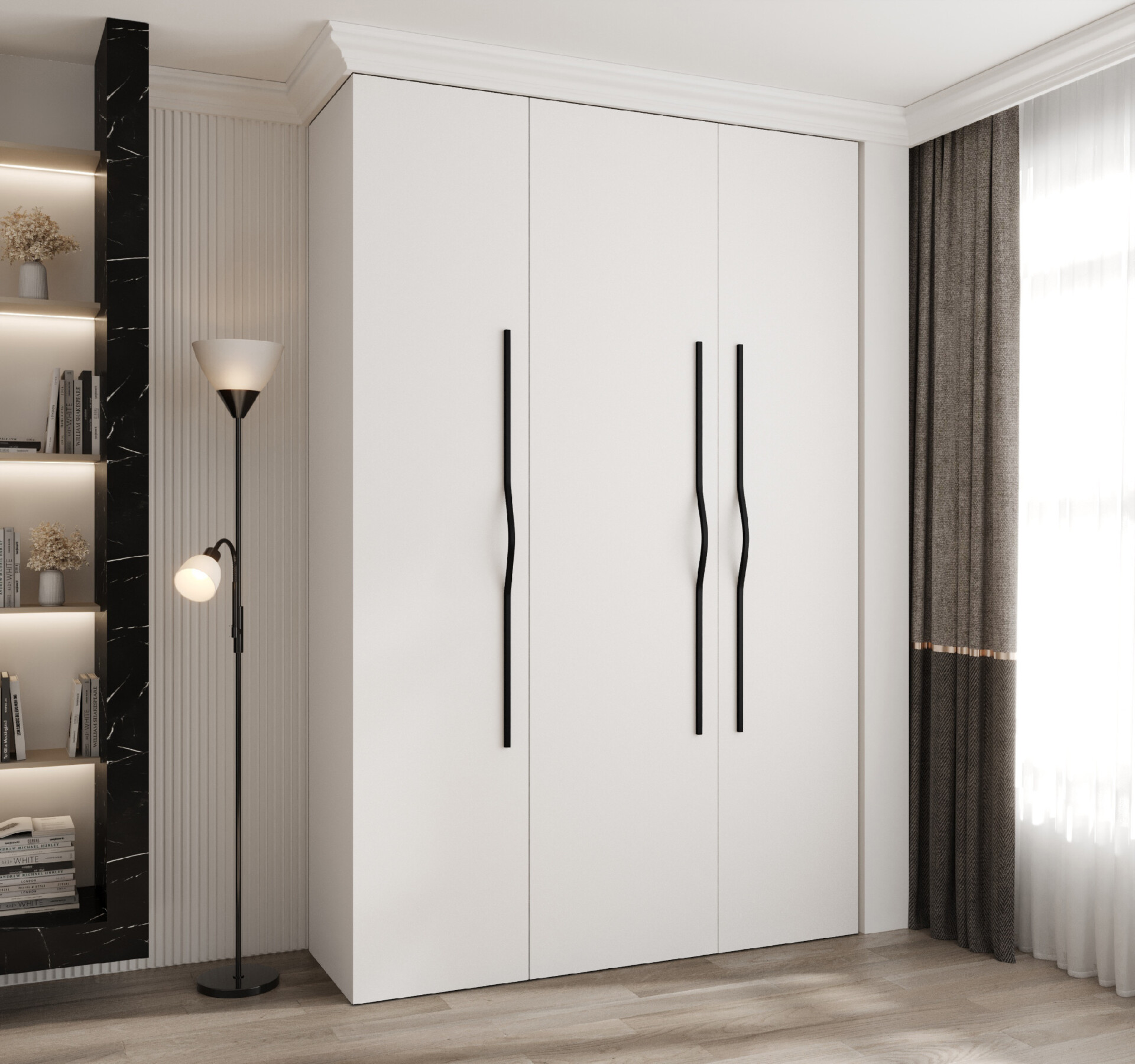 Skříň Como 2 je ideálním řešením pro každého, kdo hledá kombinaci moderního designu a praktického úložného prostoru. S výškou 245,5 cm a šířkou 140 cm nabízí dostatek místa pro vaše oblečení a doplňky. Barevná kombinace bílého korpusu a černých úchytů dodává skříni elegantní vzhled, který se hodí do každého interiéru.