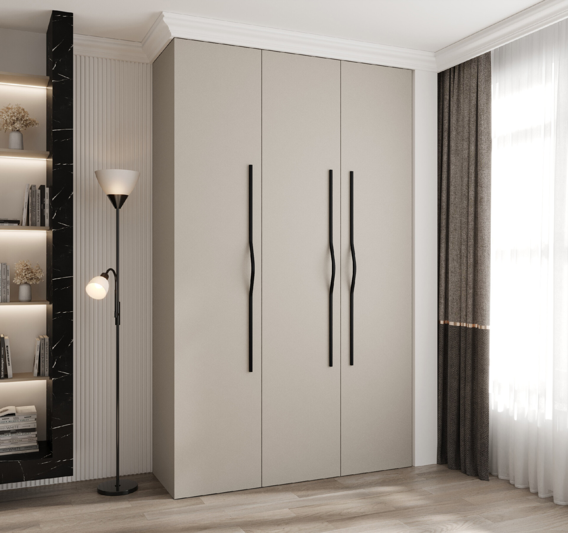 Šatní skříň Como 2 je dostupná v elegantním odstínu kašmír a s možností kombinace s černými úchyty. Je důležité si uvědomit, že odstín kašmír a bílá barva nelze kombinovat mezi sebou, což umožňuje jednoduché sladění s dalším nábytkem ve vašem interiéru.
