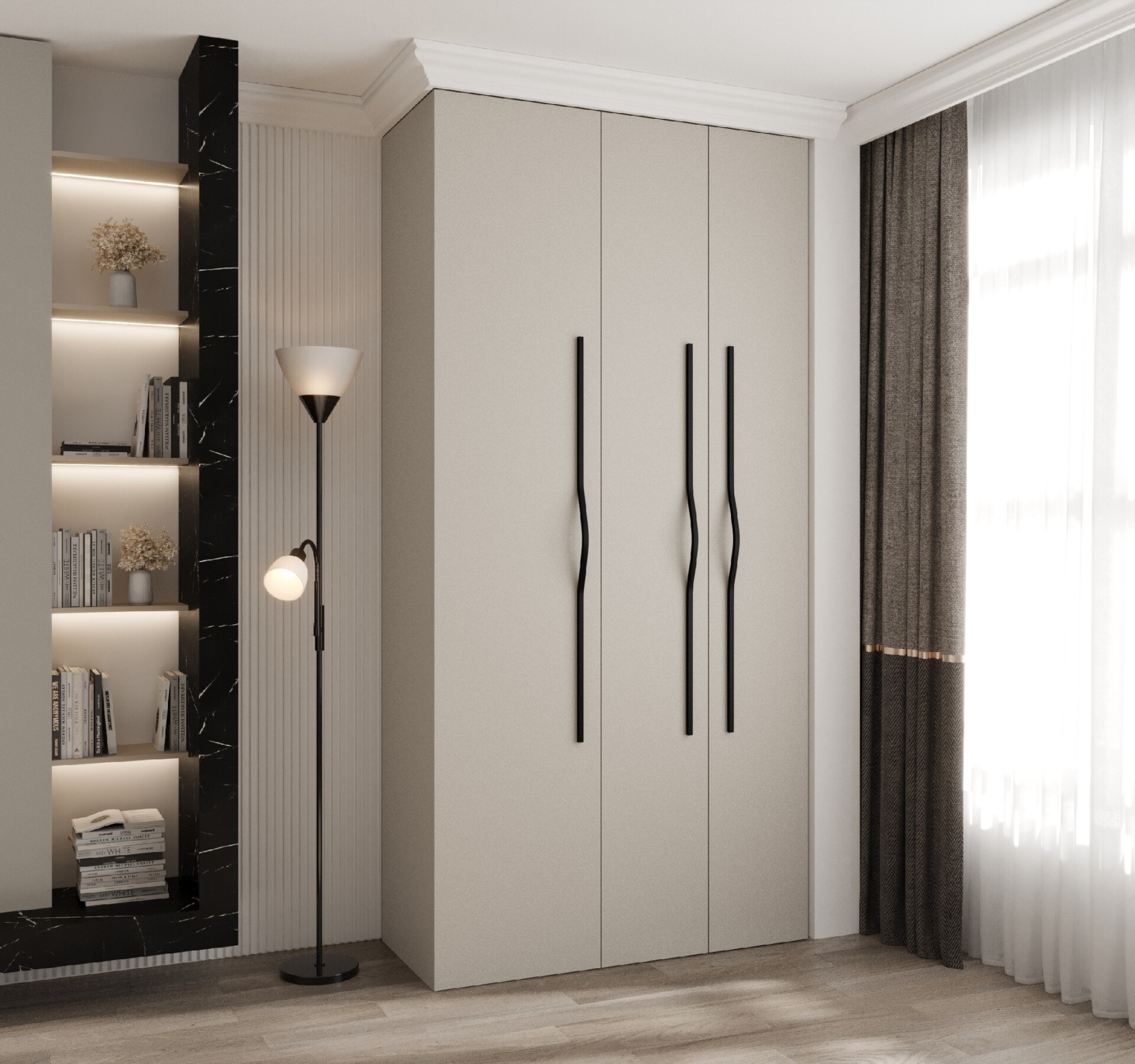 Barva korpusu a dveří v odstínu kašmír vytváří elegantní a útulný vzhled, který se hodí do jakéhokoli moderního interiéru. Kombinace s černými úchyty dodává skříni jedinečný charakter, který jistě zaujme.