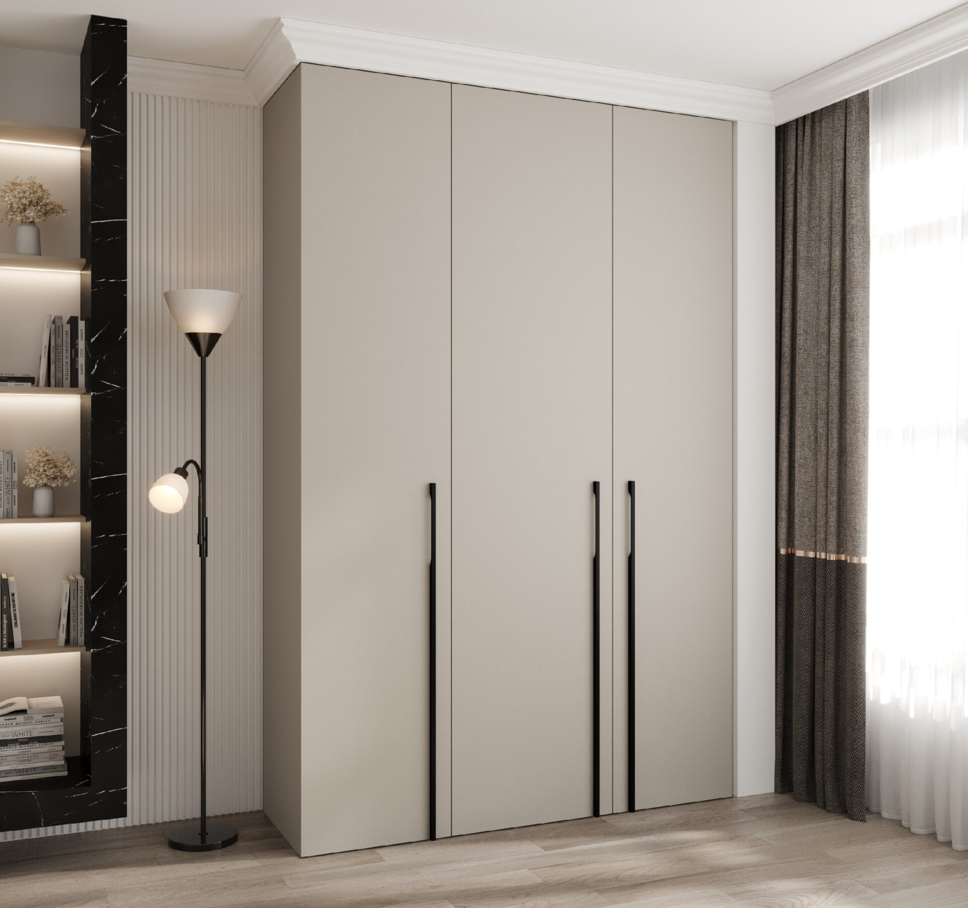 Šatní skříň Como 3 je k dispozici v elegantním odstínu kašmír, což z ní činí skvělý doplněk do každého interiéru. Je důležité poznamenat, že odstín kašmír nelze kombinovat s bílou barvou.