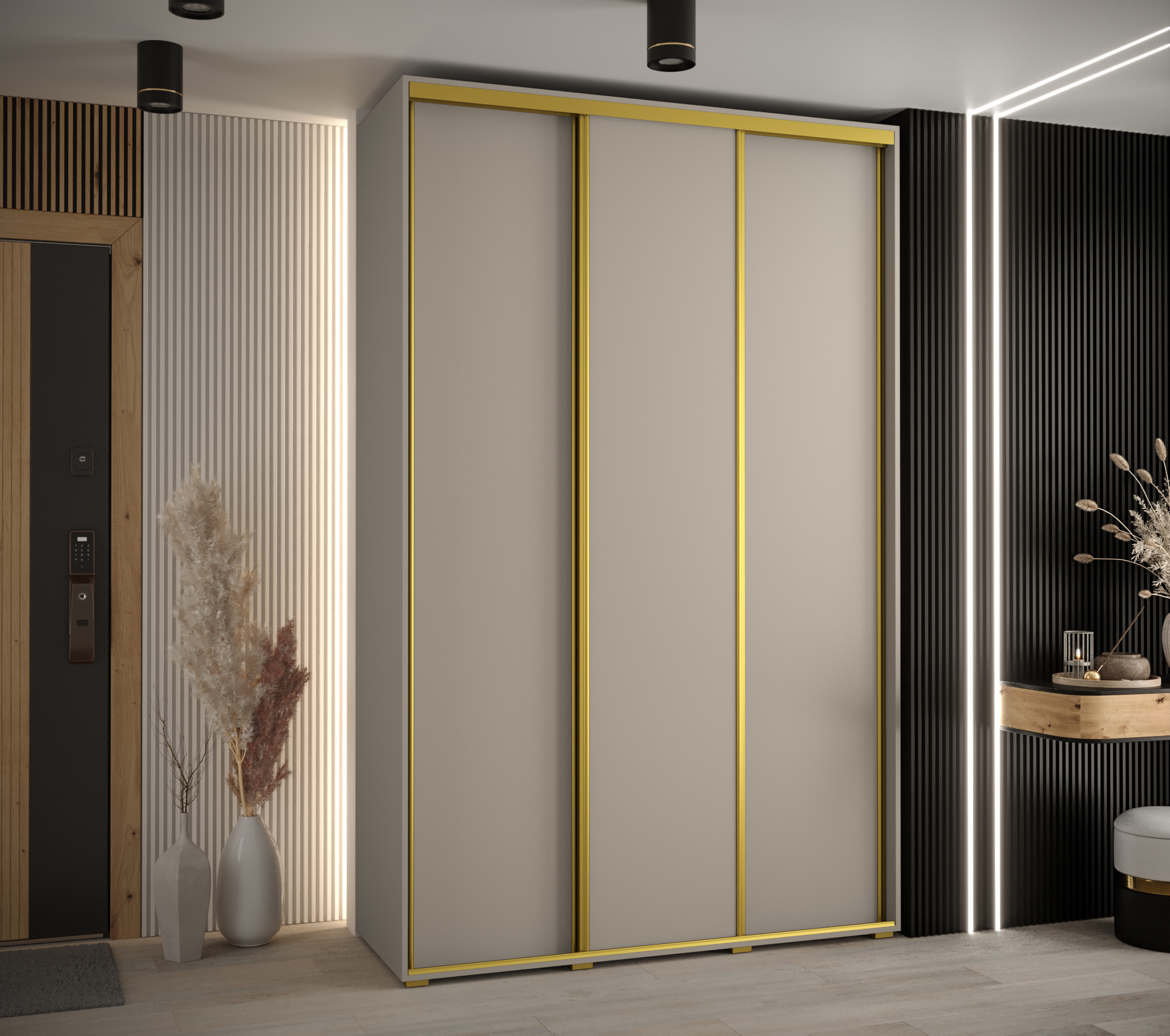 Šatní skříň Dakota je dostupná v několika barevných variantách, včetně zlatých, stříbrných a černých úchytů, což vám umožní přizpůsobit si skříň podle vlastního vkusu a stylu vašeho interiéru.