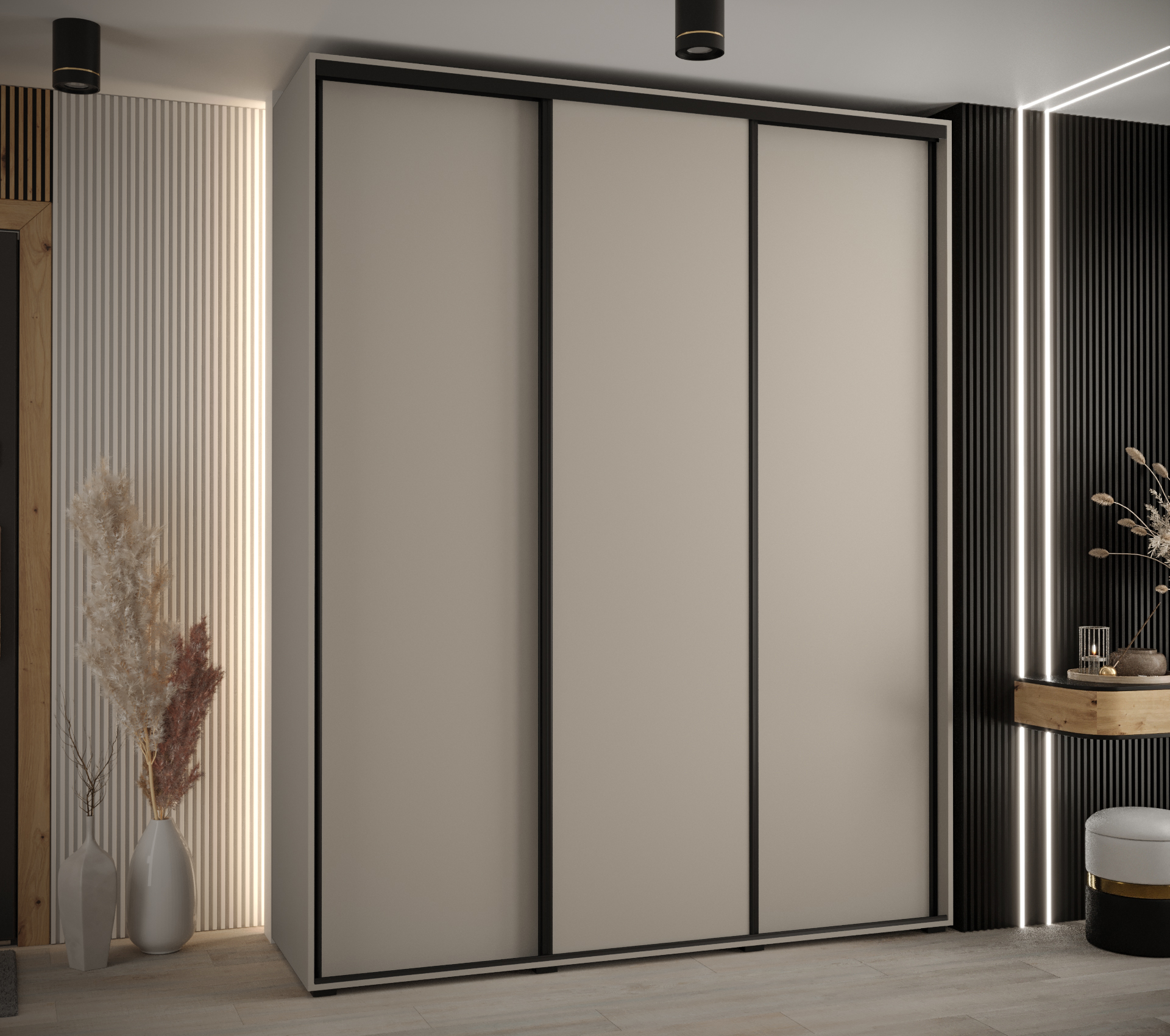 - Stylové provedení: Korpus a dveře skříně v barvě Kašmír doplňují černé úchyty, což dodává skříni moderní vzhled.