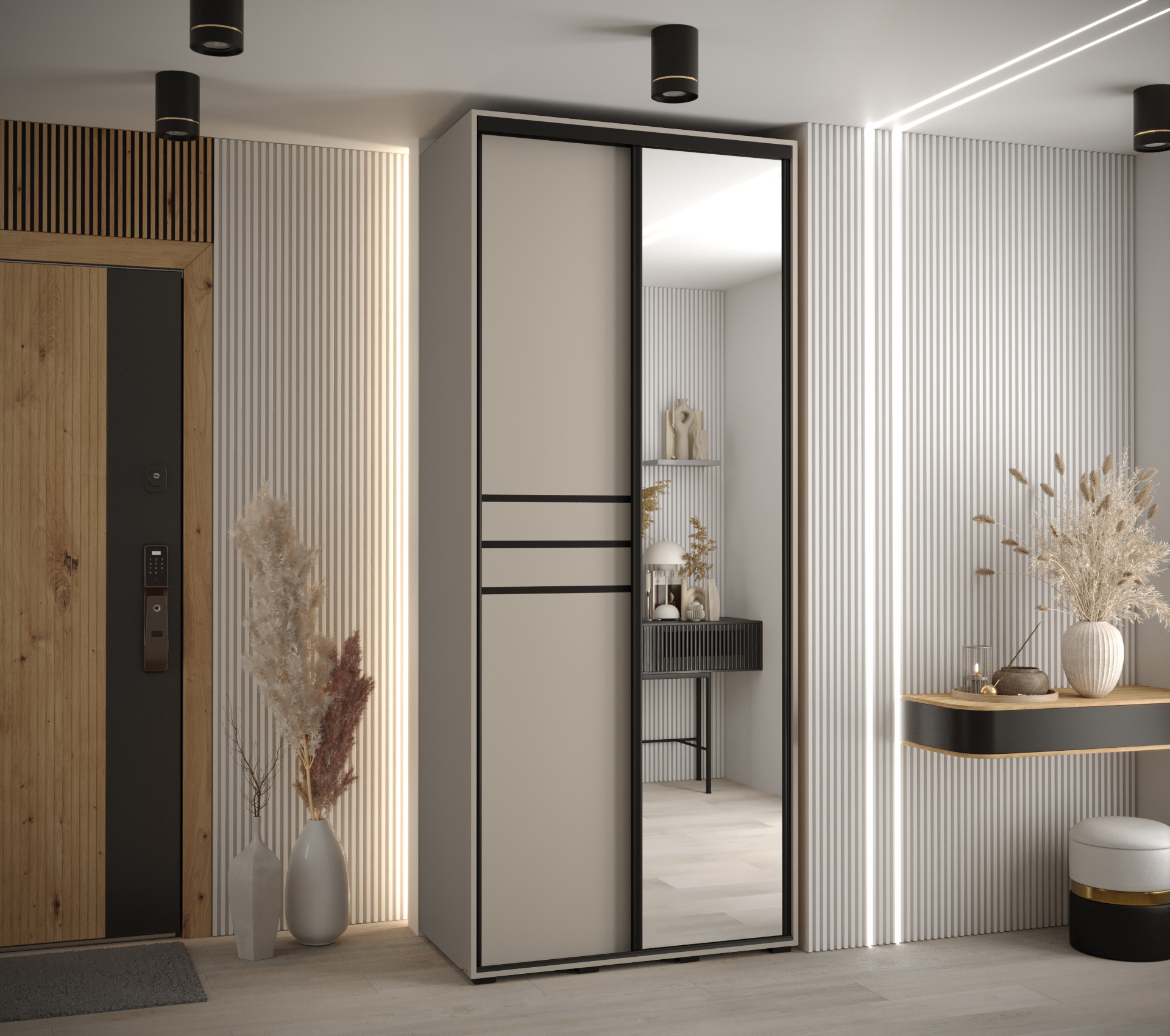 V základní variantě skříň obsahuje dvě výsuvné tyče a několik polic, které si můžete uspořádat podle vlastních potřeb. Tímto způsobem si vytvoříte ideální prostor pro uložení oblečení a doplňků.