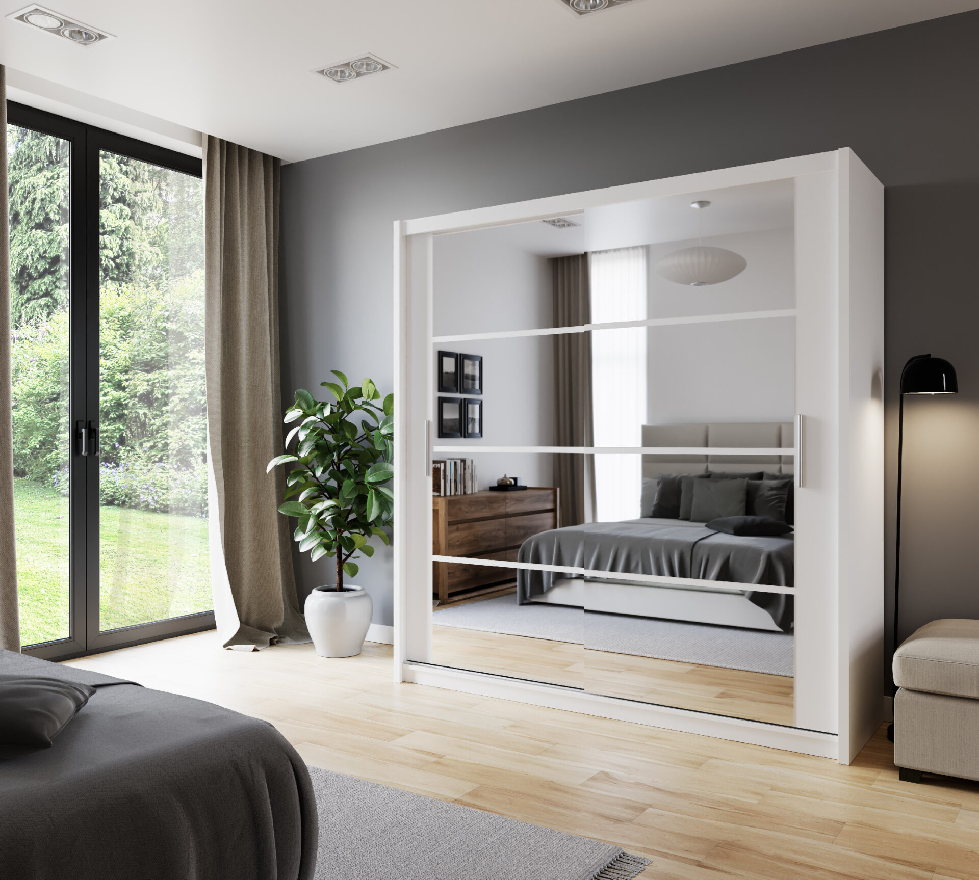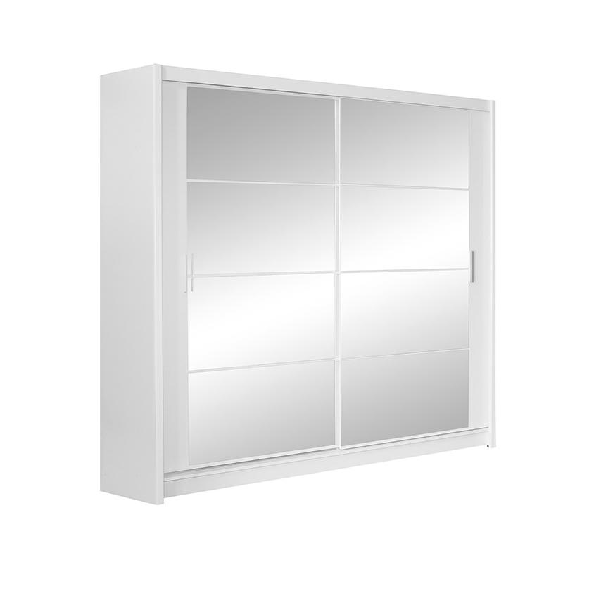 Šatní skříň Dakota je ideálním řešením pro všechny, kteří hledají moderní a praktický nábytek do svých domovů. Díky bílé barvě korpusu se skříň skvěle hodí do menších místností, kde prosvětluje prostor a opticky ho zvětšuje. Navíc zrcadlové dveře přidávají na eleganci a funkčnosti, což oceníte zejména v malých interiérech.