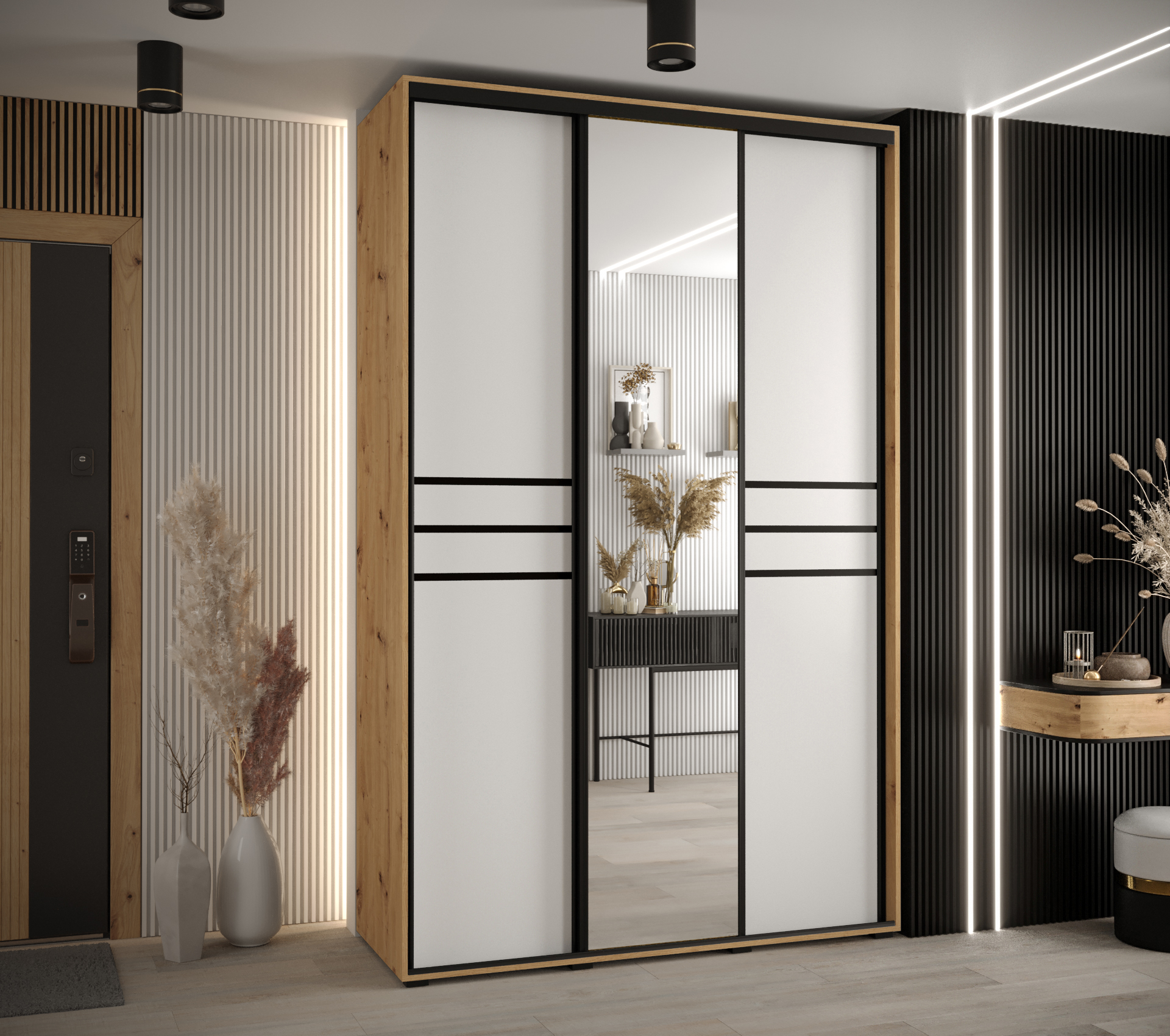 Šatní skříň Davos 11 představuje ideální řešení pro moderní a efektivní využití prostoru ve vaší domácnosti. S hloubkou 60 cm a výškou 200 cm nabízí dostatek úložného místa pro vaše oblečení a doplňky. Korpus skříně je v elegantní bílé barvě, zatímco posuvné dveře jsou v dekoru Dub-Artisan, což dodává celému kusu nábytku stylový vzhled.