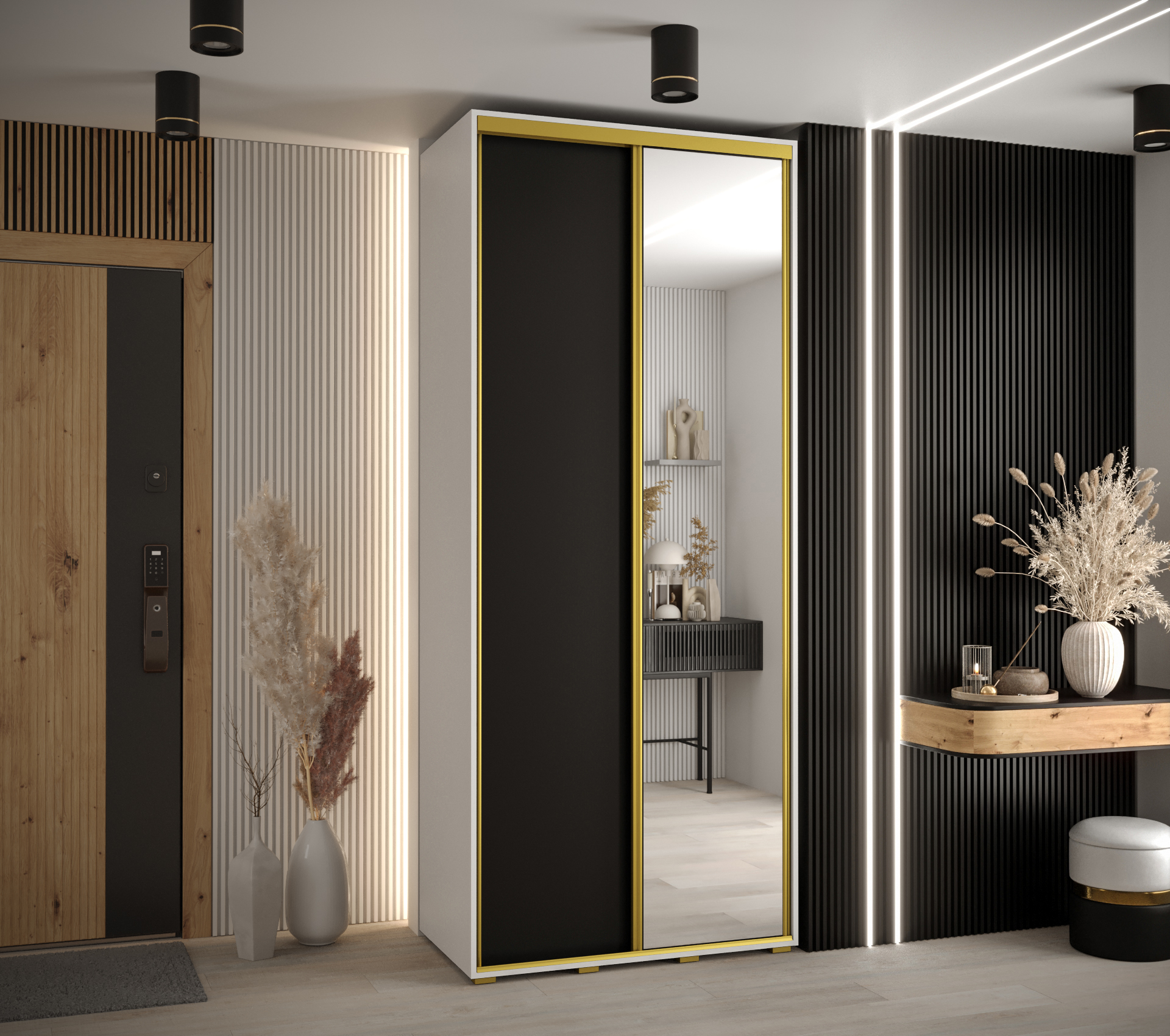 Šatní skříň Davos 3 je dostupná v několika barevných variantách. Korpus i dveře mohou být v barvě dub artisan, což je velmi žádaná kombinace pro moderní interiéry. Ozdobné lišty a úchyty jsou k dispozici v několika variantách, avšak zlaté lišty nelze kombinovat s dubem artisan.