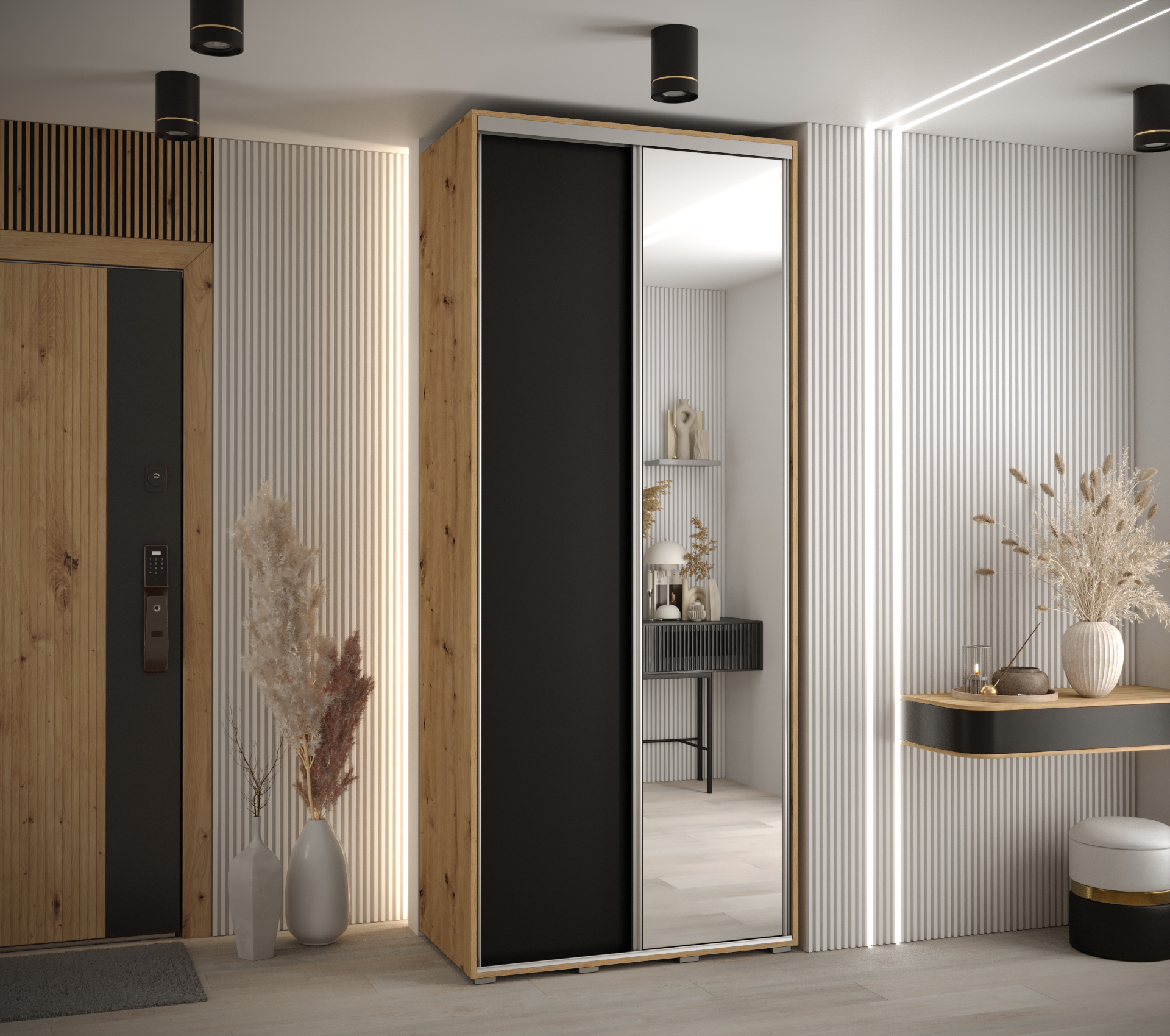 V základní variantě skříň obsahuje minimálně dvě výsuvné tyče a několik polic, které si můžete variabilně uspořádat podle svých potřeb. Toto uspořádání umožňuje efektivní využití úložného prostoru, což oceníte zejména v menších místnostech.