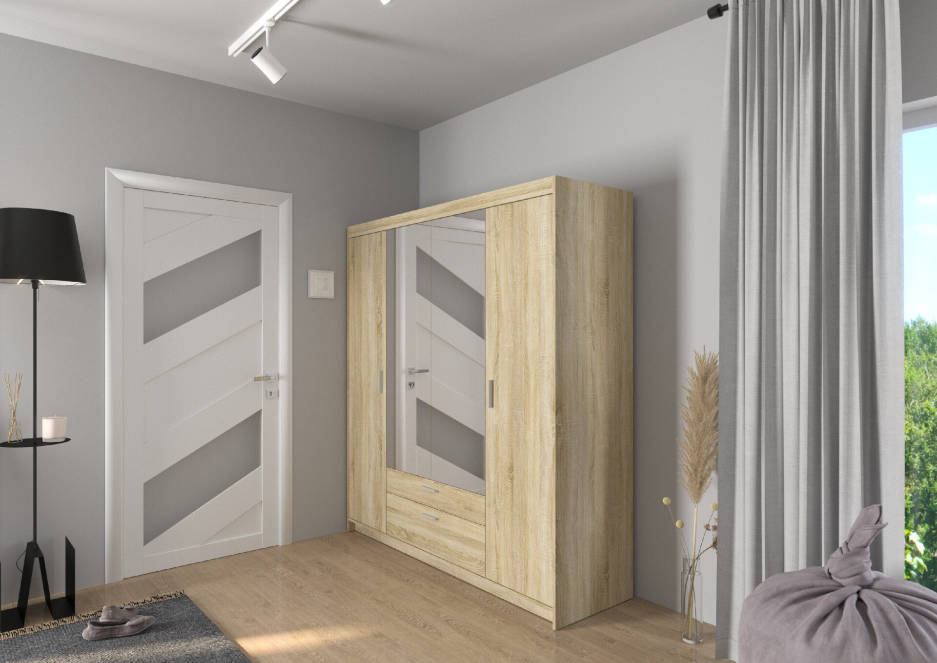 Šatní skříň Elena 4D v elegantní barvě dub sonoma je ideálním řešením pro každou ložnici. Její moderní design a praktické zrcadlo ji činí nejen funkčním, ale i stylovým doplňkem vašeho interiéru.