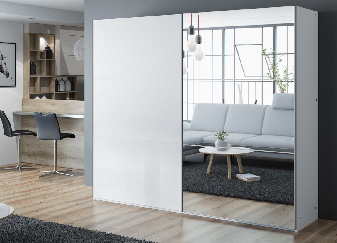 - Moderní design s posuvnými dveřmi a zrcadlem