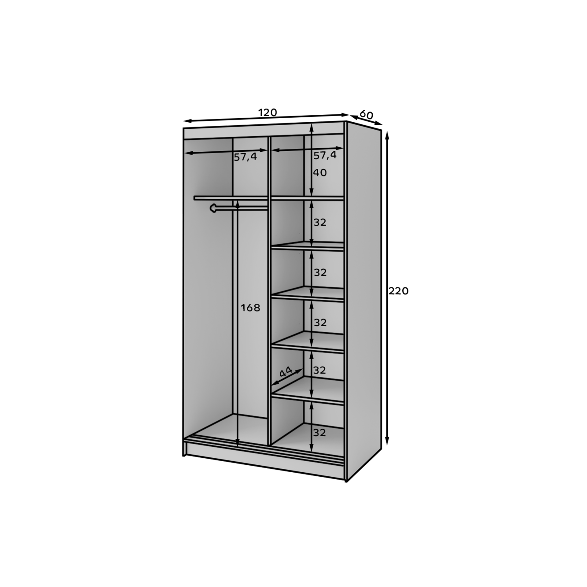 - Celková šířka: 120 cm