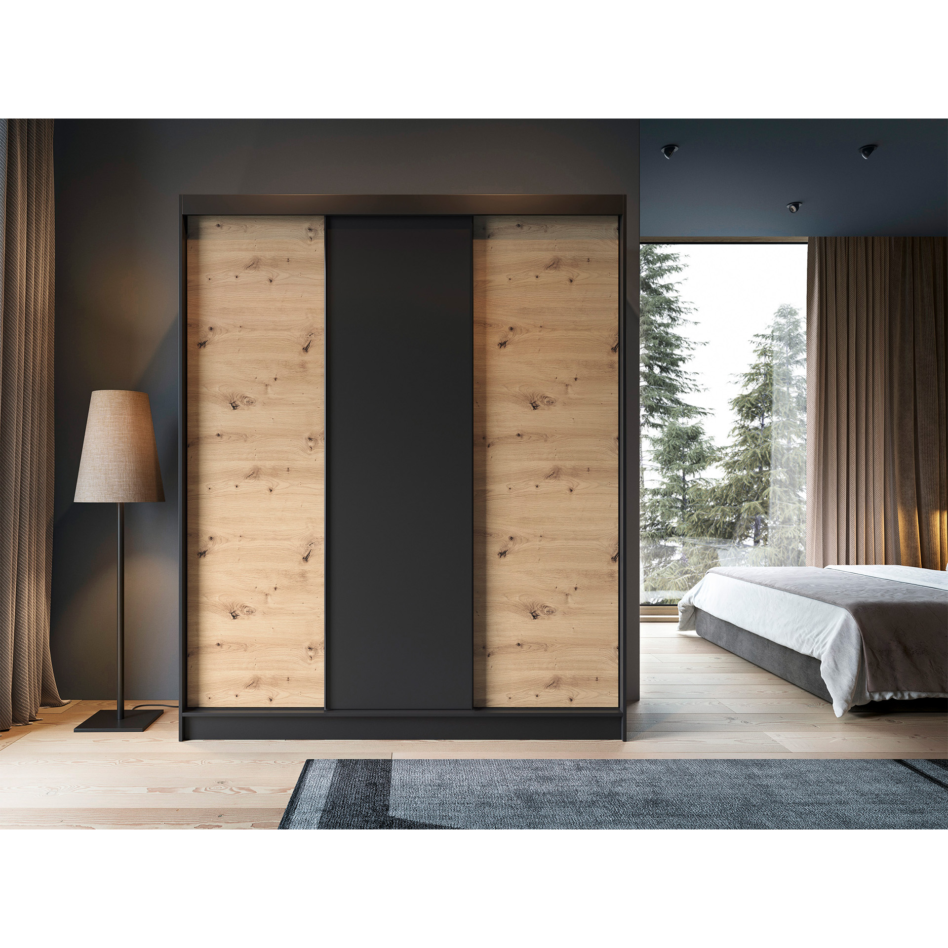 Černá barva korpusu skříně v kombinaci s dveřmi v odstínu dub artisan přináší do vašeho domova moderní a nadčasový vzhled. Tato kombinace se snadno integruje do různých stylů interiéru, ať už preferujete minimalistický nebo tradiční design.