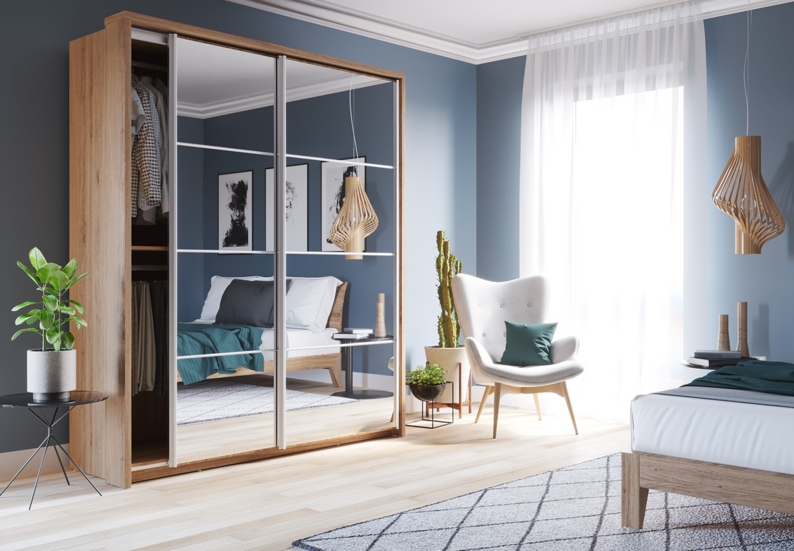 Šatní skříň EVESE spojuje moderní design s praktickými funkcemi. Posuvné dveře a zrcadlo ji činí ideální volbou pro úsporu místa a stylové uspořádání.