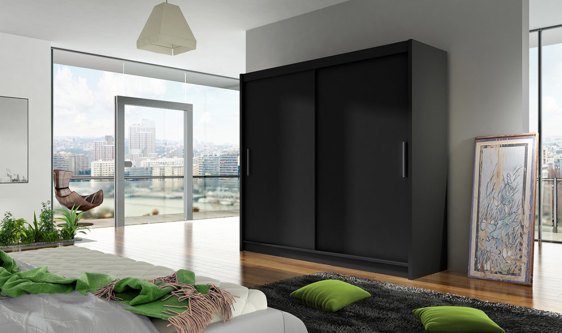 Šatní skříň GAMBA I představuje ideální řešení pro ty, kteří hledají kombinaci moderního designu a funkčnosti. S jejími posuvnými dveřmi a elegantním černým matným povrchem se stává nejen praktickým, ale i stylovým prvkem každého interiéru.