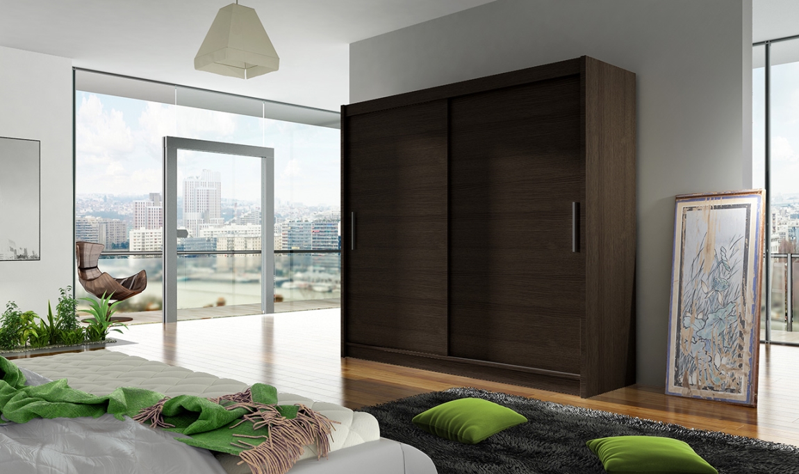 Šatní skříň GAMBA I je ideální volbou pro moderní interiér. Nabízí elegantní design a praktické posuvné dveře pro maximální úsporu prostoru.