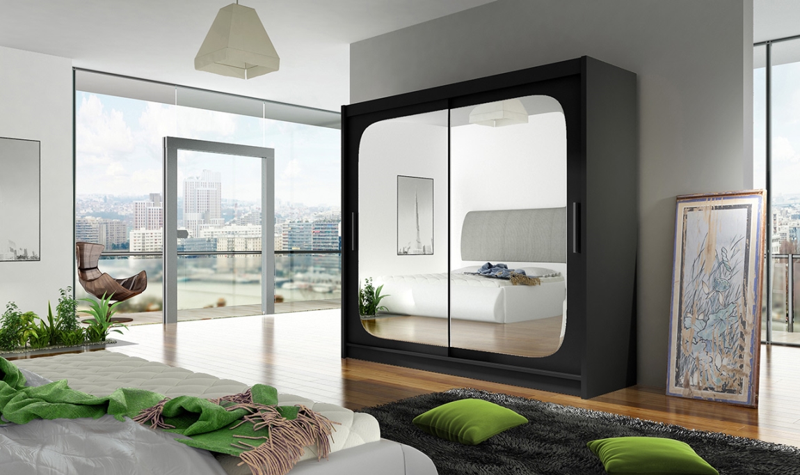Šatní skříň GAMBA VIII – černý mat se zrcadlem