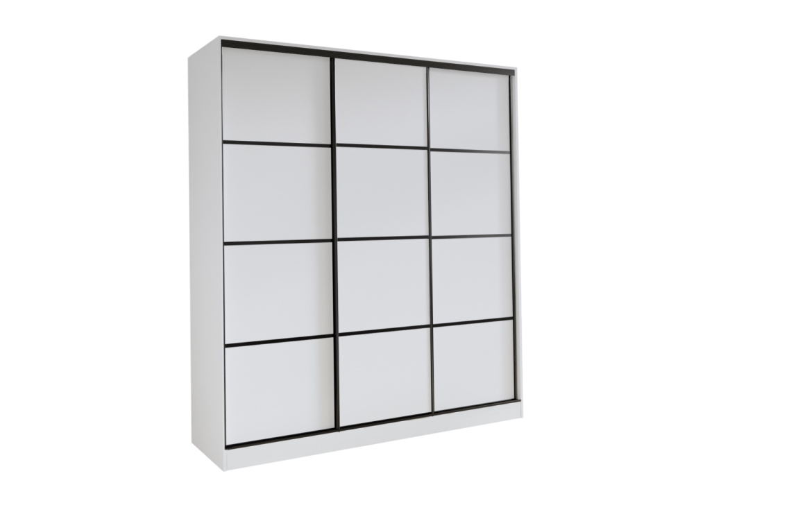 Skříň je vyrobena z kvalitního lamina v bílé matné barvě, která dodává interiéru moderní vzhled. Ozdobné lišty na dveřích jsou volitelné, což vám umožní přizpůsobit si vzhled skříně podle vlastních představ. Můžete si zvolit hladké dveře bez lišt pro minimalistický vzhled.
