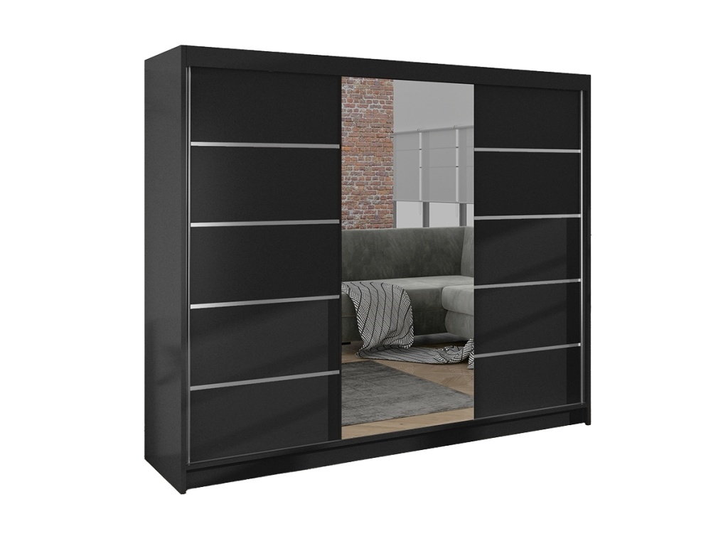 Šatní skříň HARDY VI se zrcadlem je perfektní volbou pro ložnice, předsíně nebo šatny. Její moderní design a černá barva se snadno kombinují s ostatním nábytkem a doplňky. Díky zrcadlu opticky zvětšuje prostor a přidává na eleganci každého pokoje.