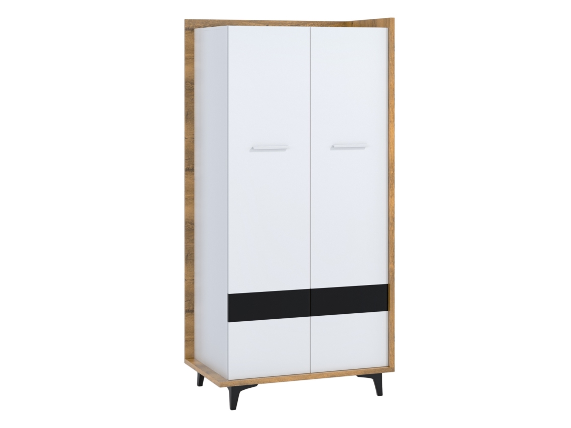 Šatní skříň KNUT 2D je ideální volbou pro ty, kteří hledají praktické a stylové řešení pro uskladnění oblečení a osobních věcí. S rozměry 95 x 195 x 60 cm se skvěle hodí do menších i větších prostor. Její moderní design v kombinaci dubu burgundského, bílé a černé barvy přináší do vašeho interiéru eleganci a šarm.