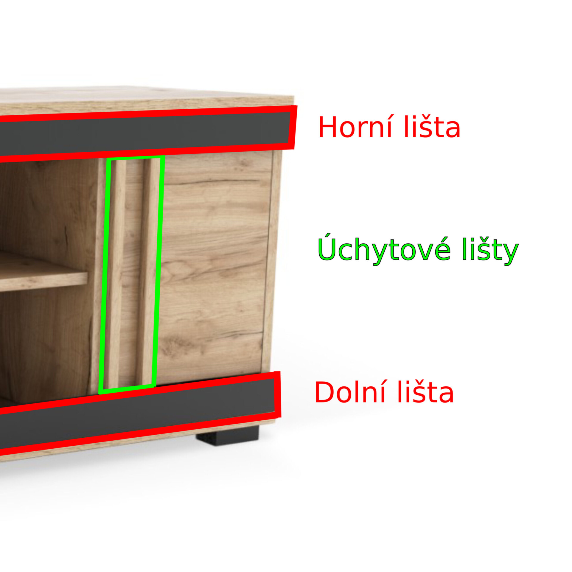 - Úchytové lišty: černá a dub craft zlatý