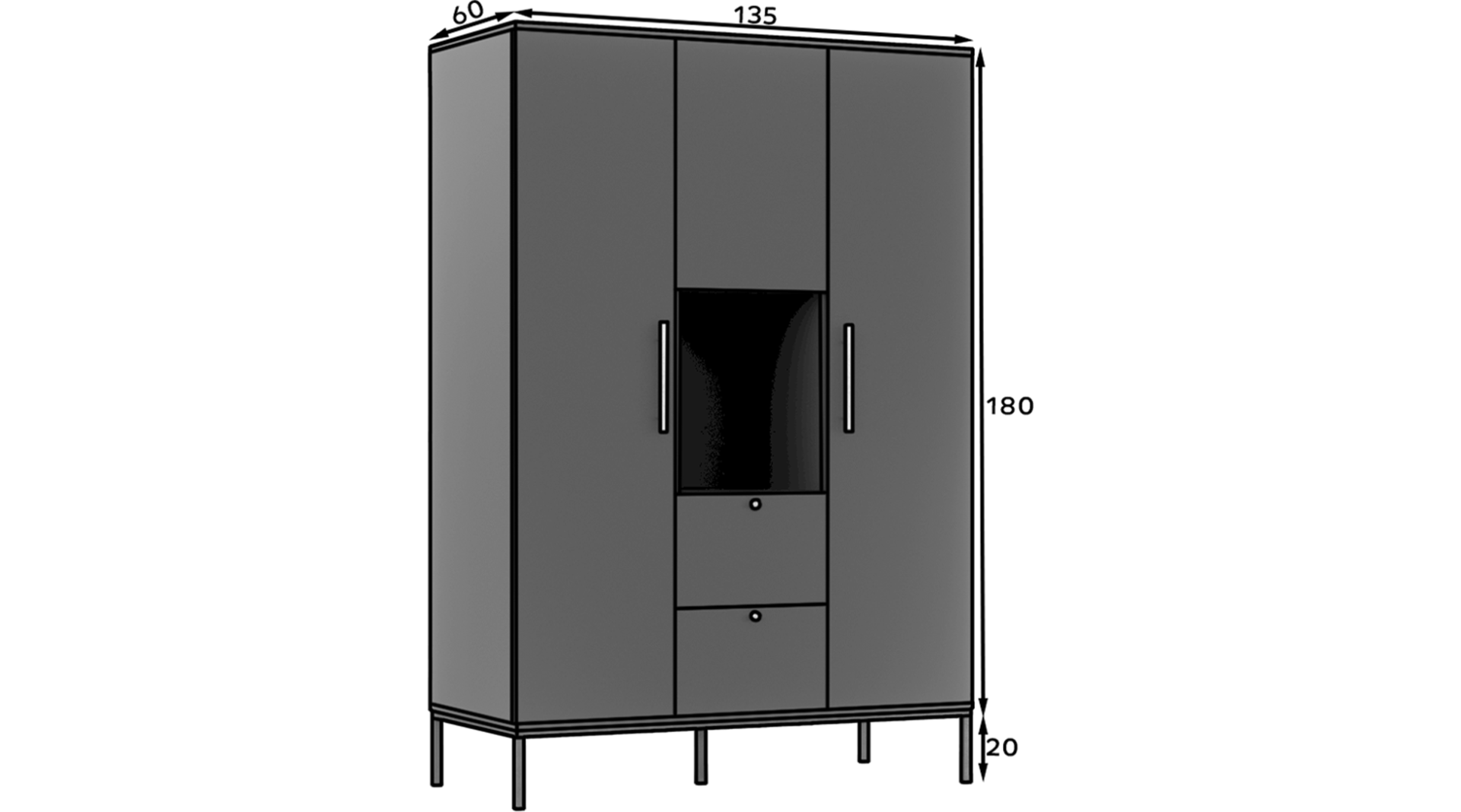 Šatní skříň Lanzzi 135 je skvělým řešením pro ty, kteří hledají stylový a praktický nábytek do svého domova. Její černý korpus a dvířka dodávají nábytku elegantní vzhled, který snadno zapadne do moderního interiéru.