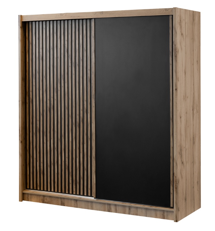Šatní skříň London je ideálním řešením pro ty, kteří hledají kombinaci funkčnosti a stylu. S rozměry 203 cm vám poskytne dostatek úložného prostoru, zatímco posuvné dveře s možností zrcadla dodají vašemu interiéru moderní vzhled. Korpus a dveře skříně jsou vyrobeny z kvalitní laminované dřevotřísky o síle 16 mm, což zajišťuje vysokou odolnost a dlouhou životnost.