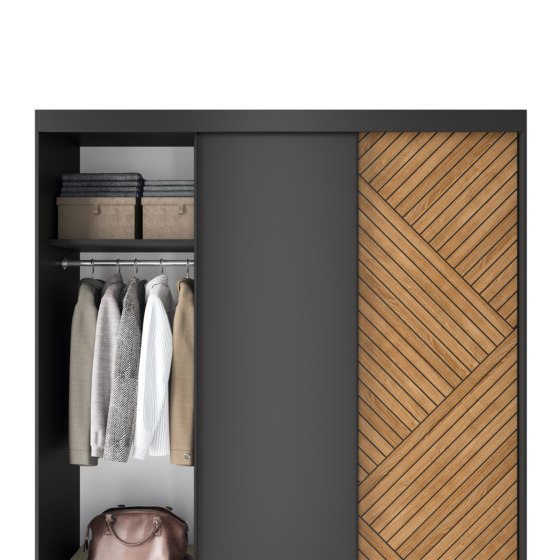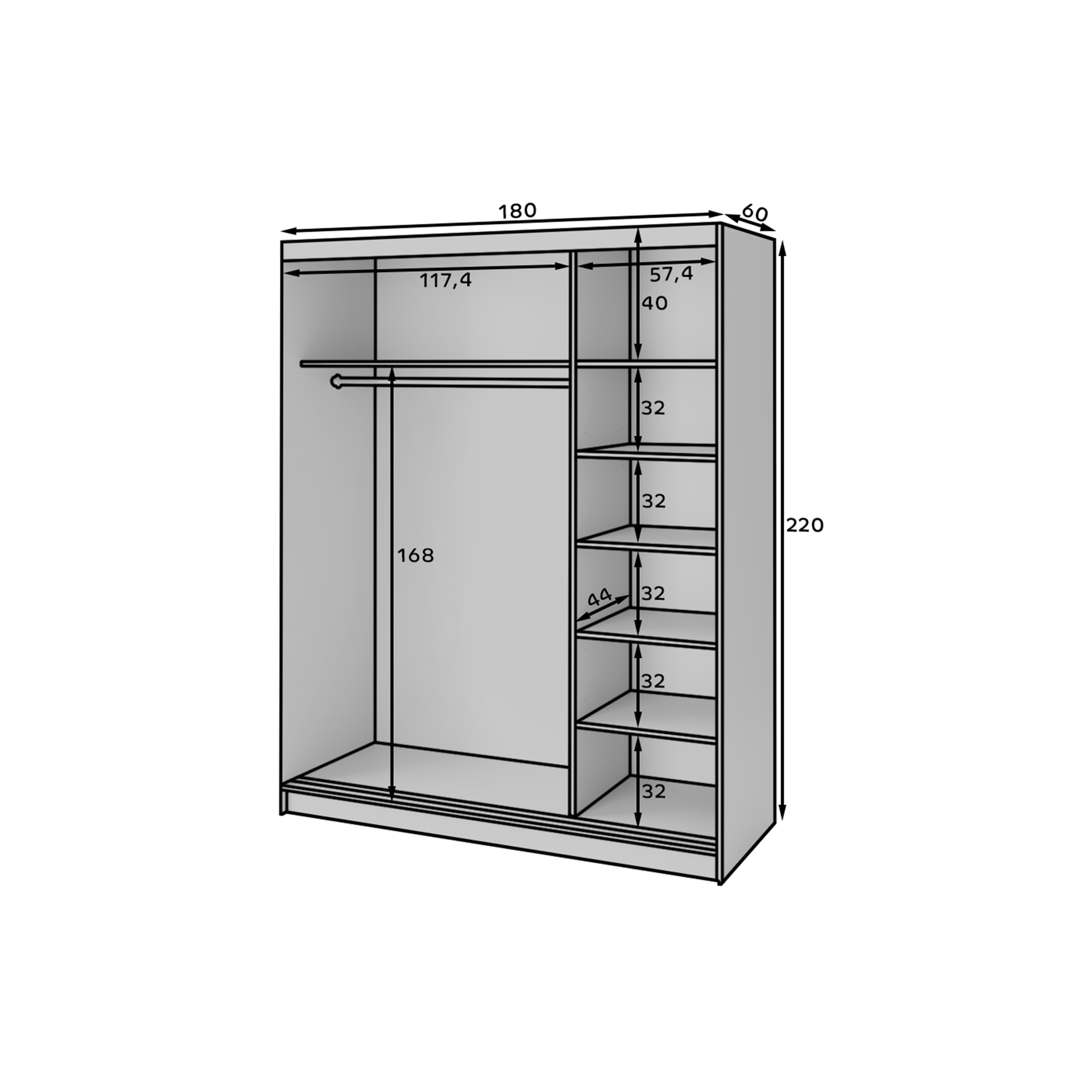 - Praktické uspořádání: Uvnitř skříně najdete šatní tyč a police, které poskytují dostatek prostoru pro uskladnění vašich oděvů a dalších potřeb.