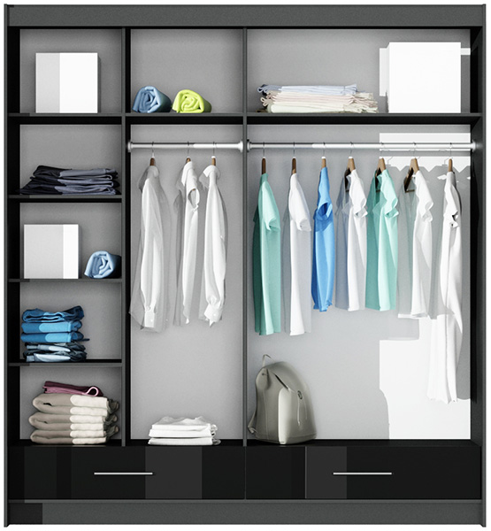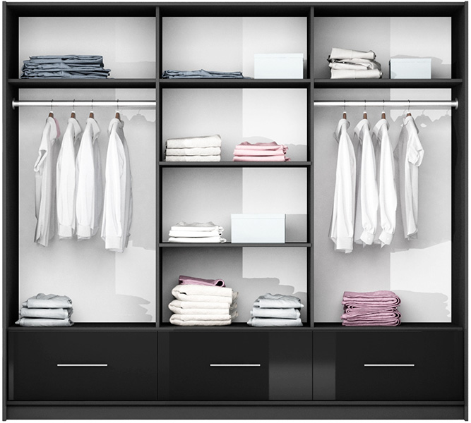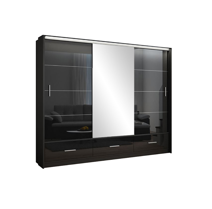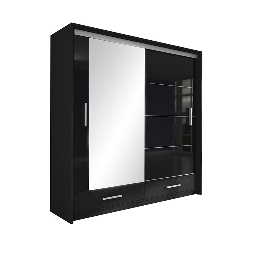Šatní skříň Marsylia černý lesk 208 cm